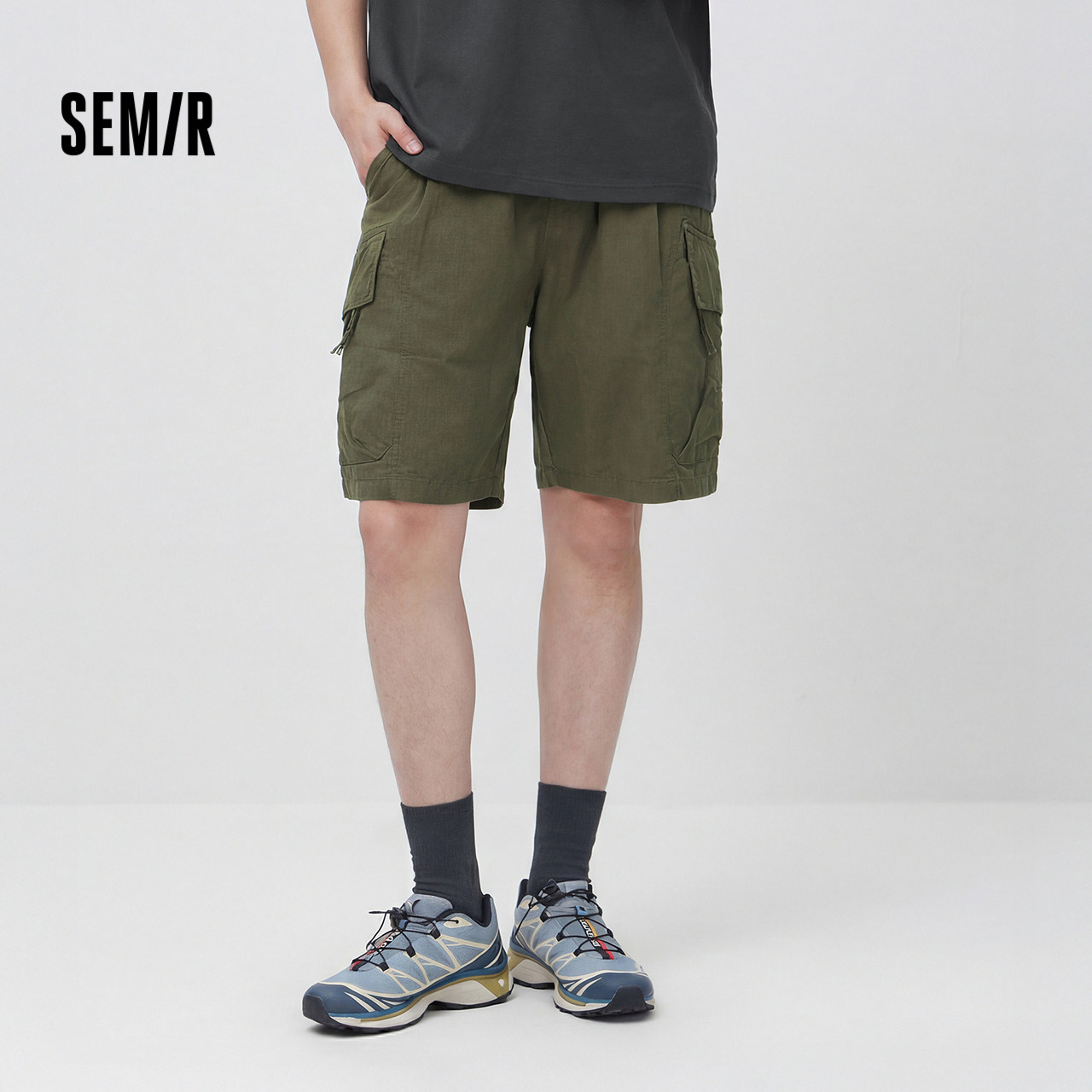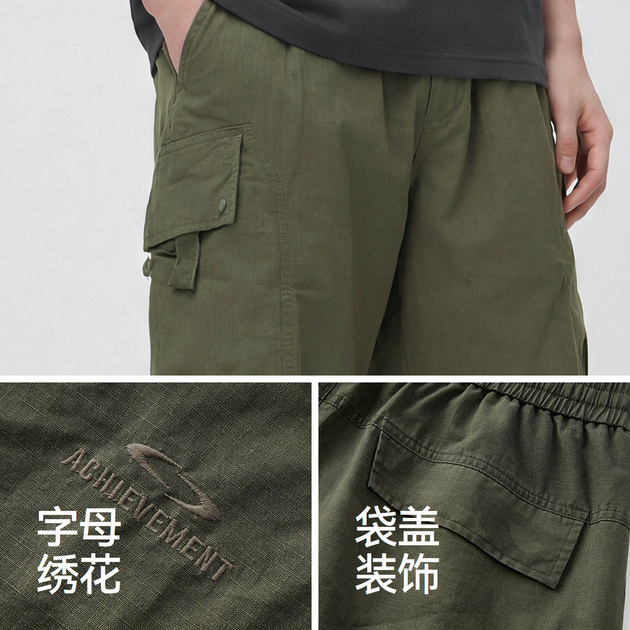 森马休闲裤男夏季户外迷彩工装裤时尚绣花宽松直筒五分裤都市时尚