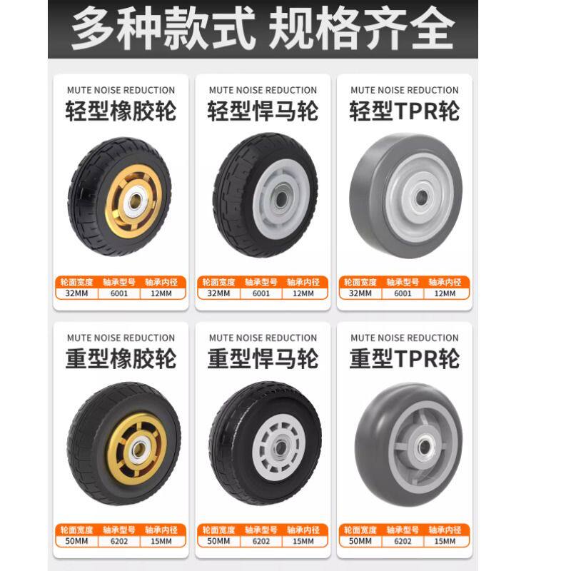 万向轮轮子橡胶静音滑轮4/6寸平板车手推车轮子拉车拖车重型脚轮