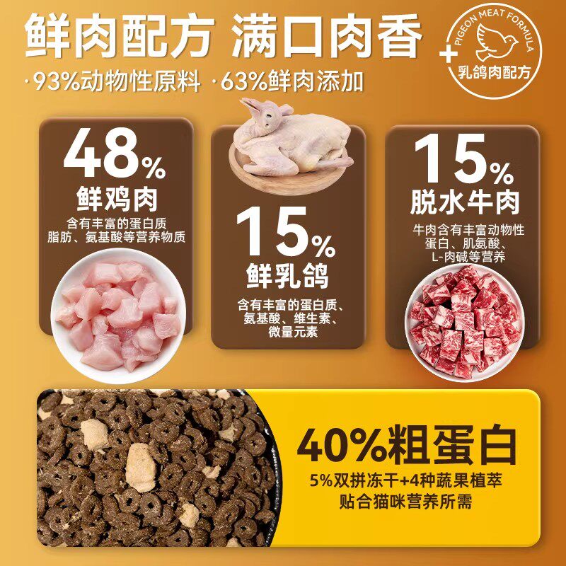 【加购2月24号李佳琦美妆节】诚实一口P40鲜肉成猫粮全价乳鸽猫粮