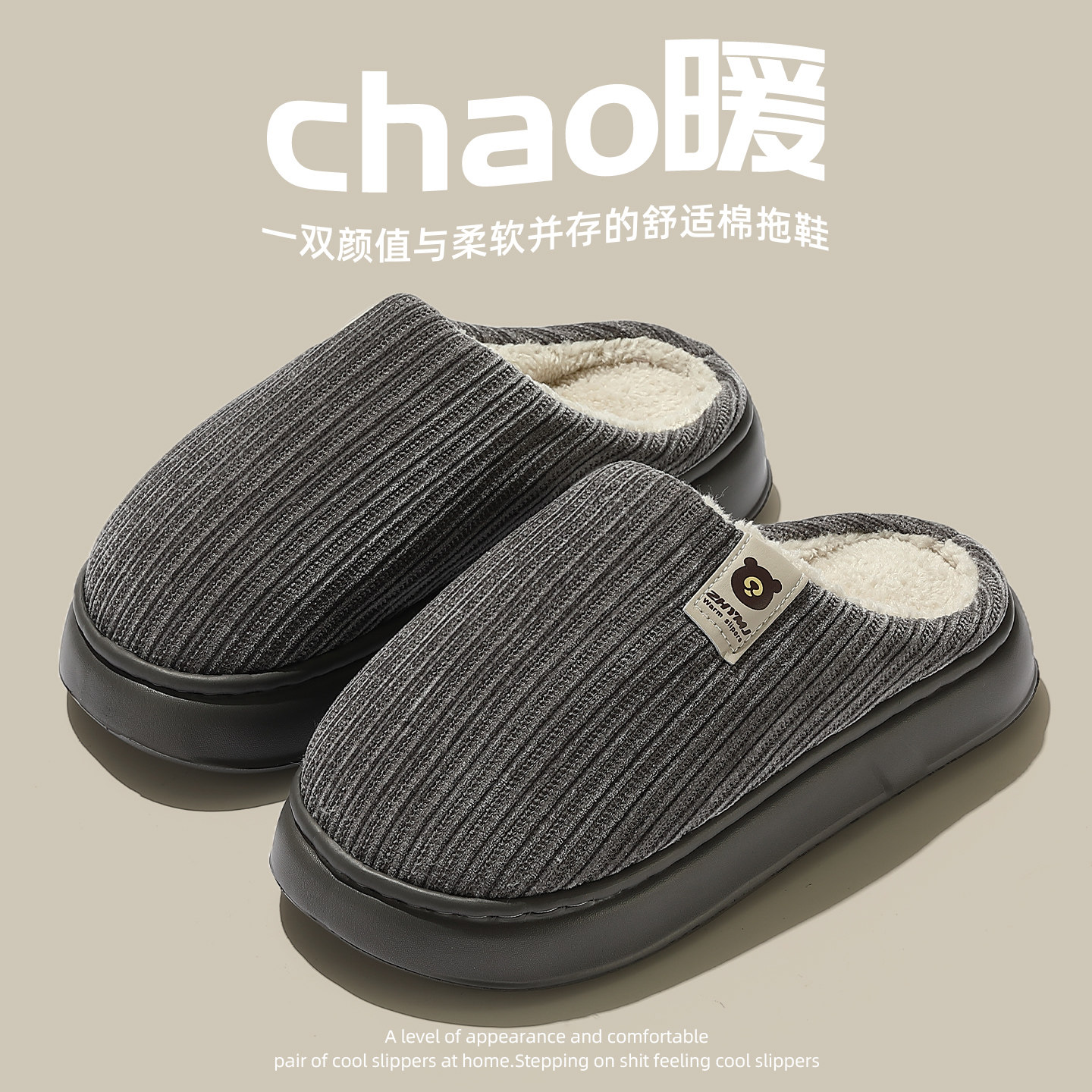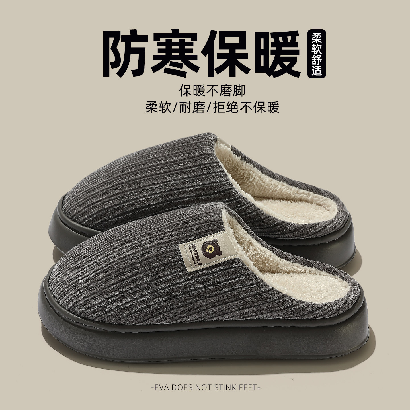 厚底棉拖鞋男秋冬季2025新款室内家居防滑防臭毛绒保暖棉拖男情侣