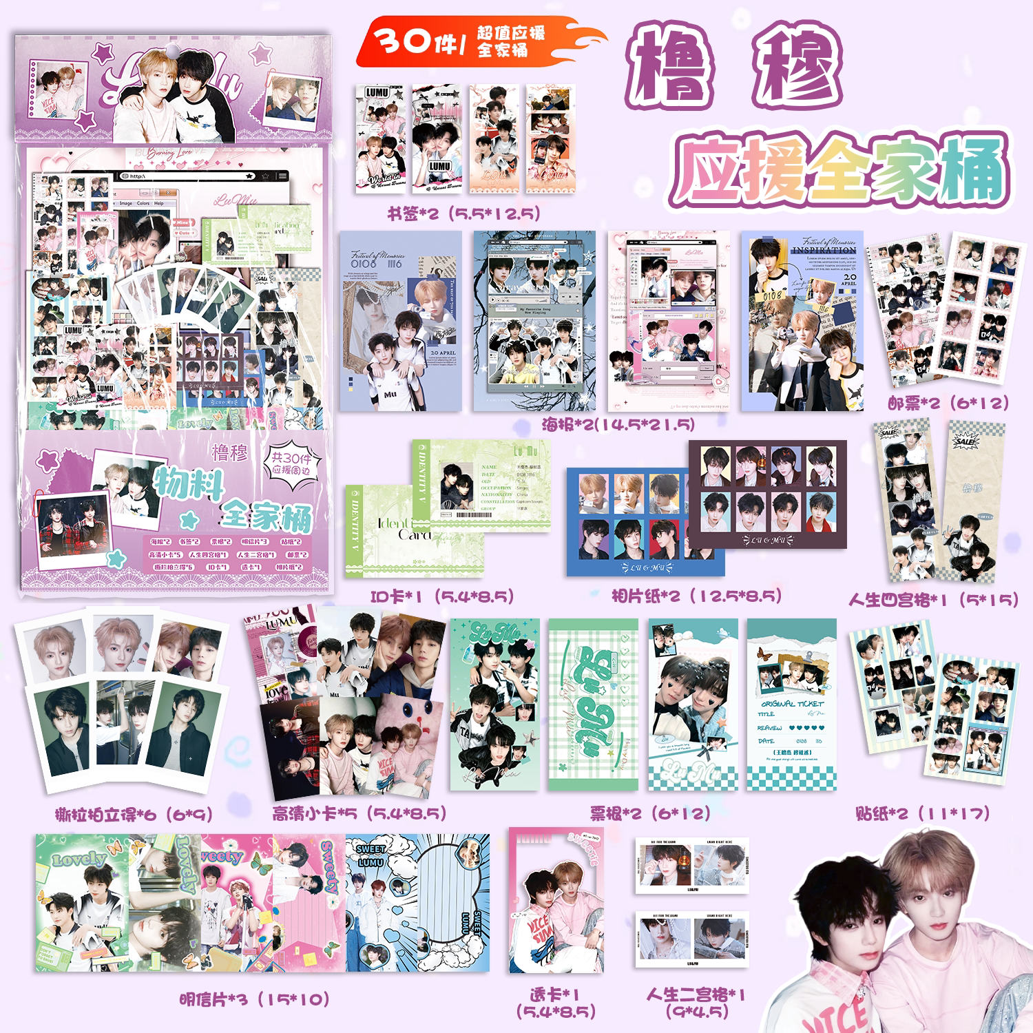 橹穆应援物料全家桶礼包 王橹杰穆祉丞周边书签拍立得贴纸明信片