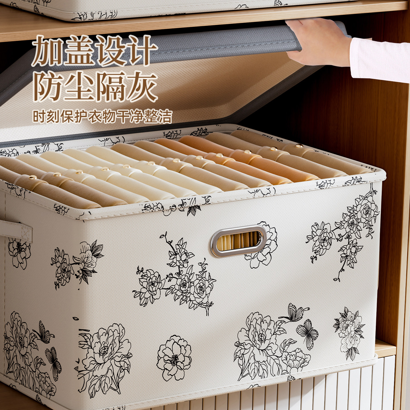 天山棉麻收纳筐衣柜收纳整理分层神器PP板可水洗衣服储物盒收纳箱