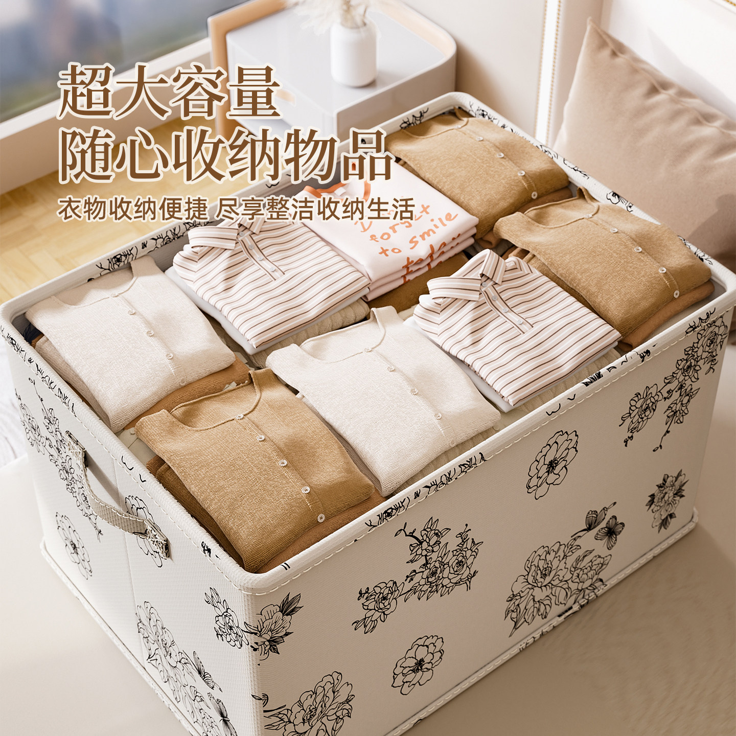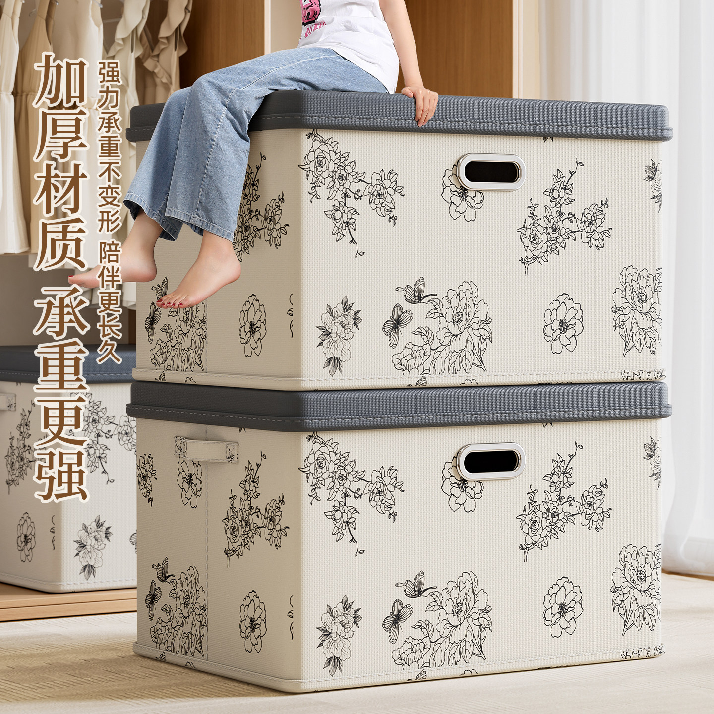 布艺收纳箱家用衣服衣物整理盒大容量超大折叠加厚衣柜储物箱神器