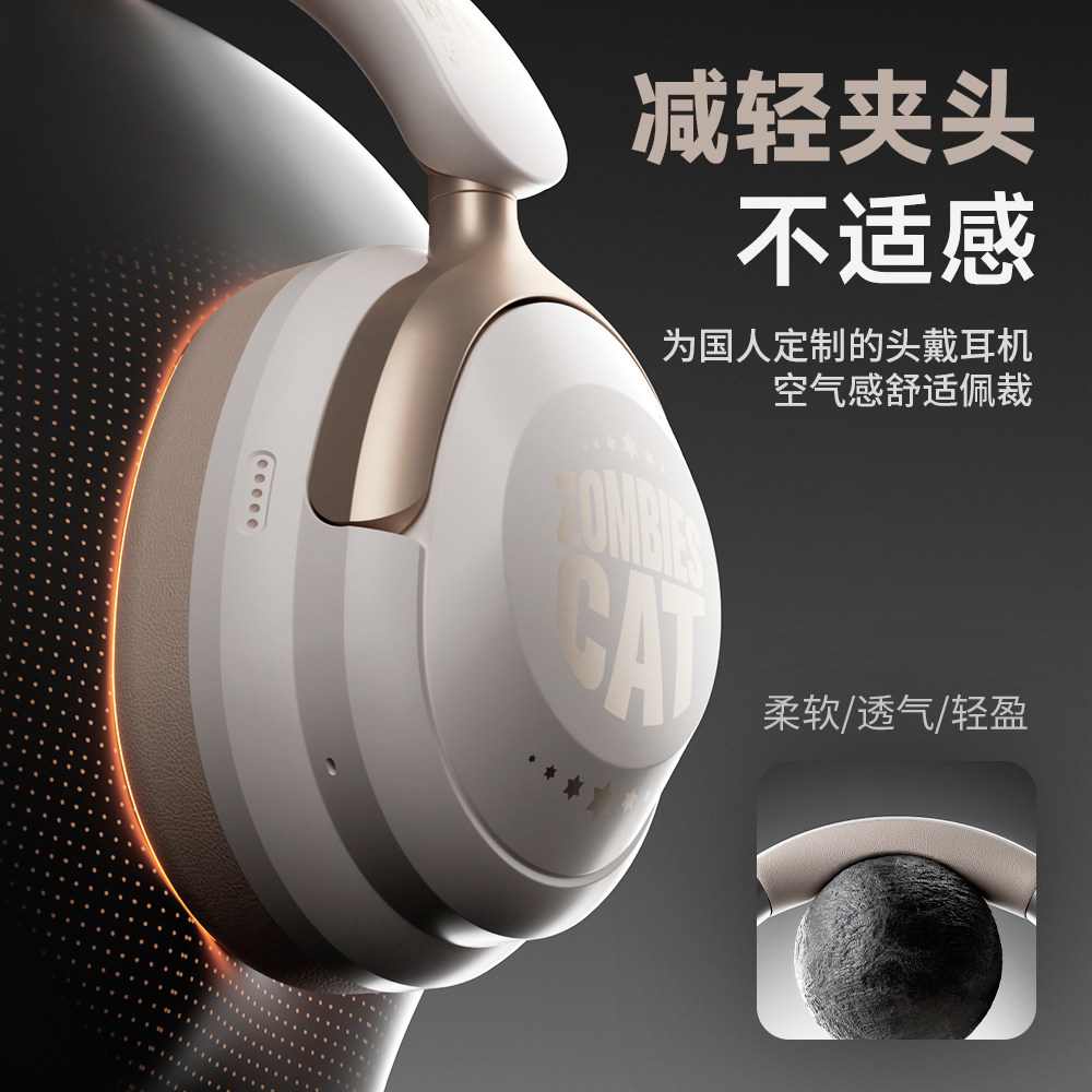 魔鬼猫蓝牙耳机头戴式无线游戏ANC主动降噪带麦礼物适用索尼华为