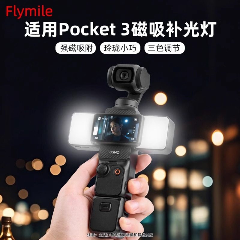 适用大疆OSMO POCKET3磁吸补光灯 Action5Pro运动相机打光灯配件