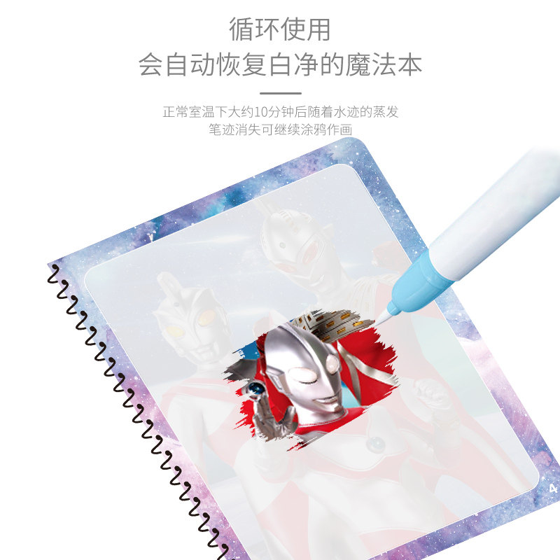 奥特曼神奇水画本反复涂鸦清水涂画本水画册儿童涂色男孩幼儿园益智可水洗女孩宝宝填色水彩3岁魔法奖励玩具