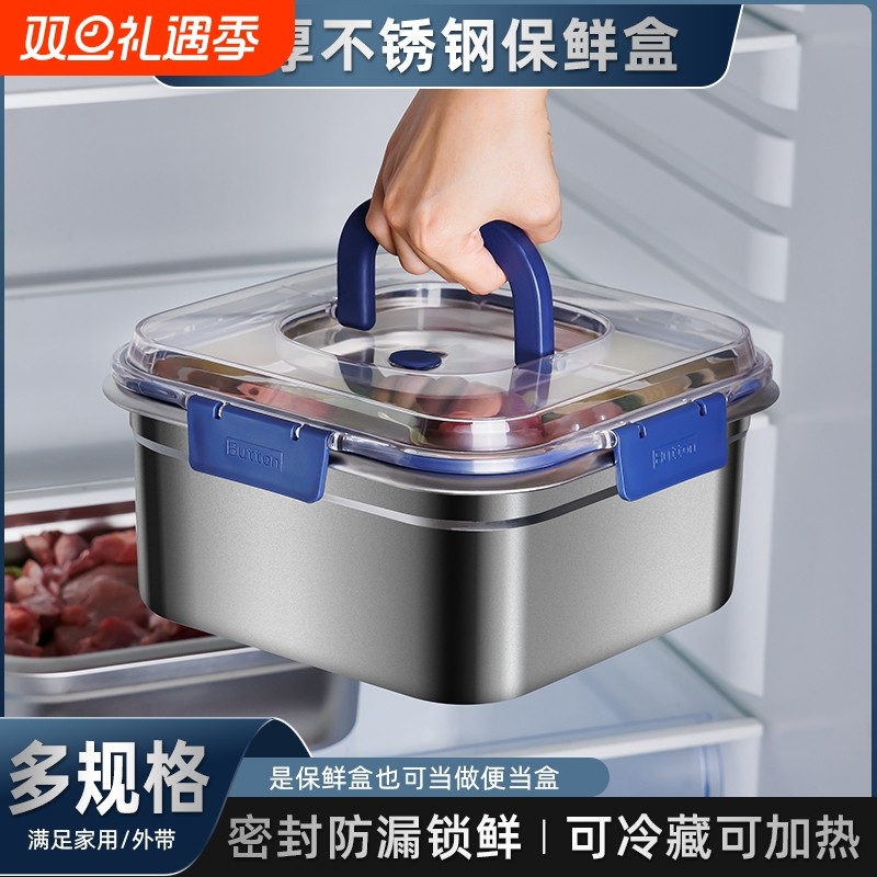 手提316不锈钢保鲜盒食品级大容量饭盒密封带盖盒子微波炉冰箱