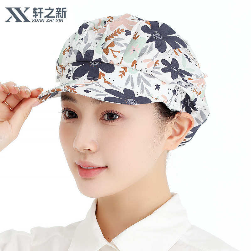 纯棉厨房帽子女防油烟做饭防掉发透气防尘松紧食品厨师帽工作帽