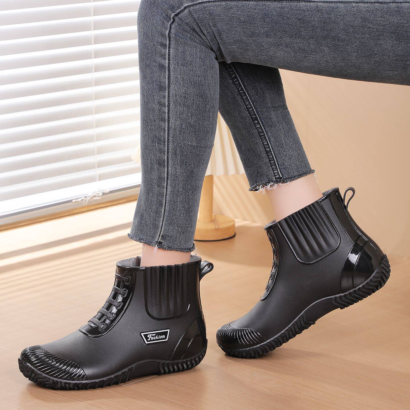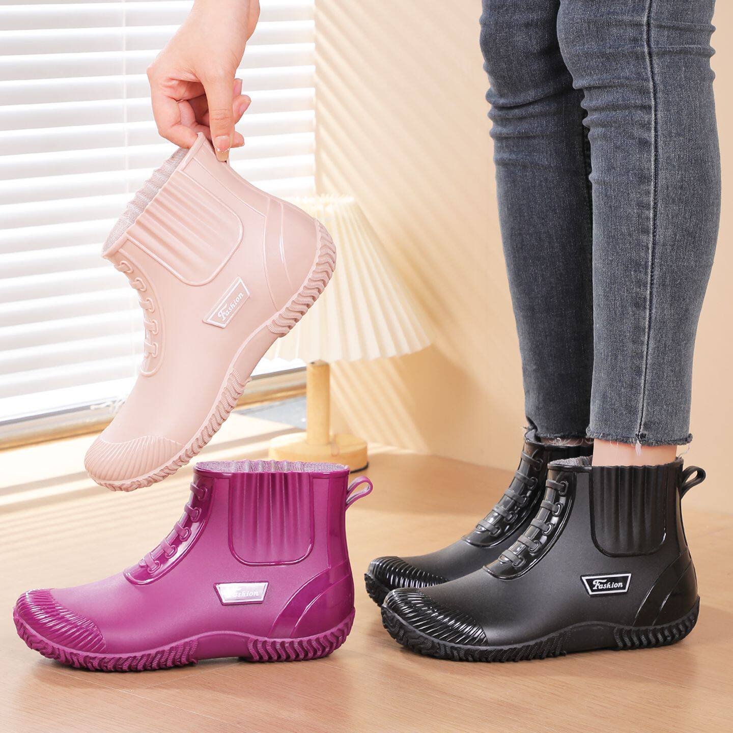 买一送一鞋垫外穿防水防滑雨靴中筒软底胶鞋女士短筒冬季耐磨雨鞋
