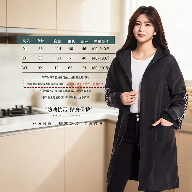 冬季加绒罩衣大人加厚长袖围裙防水韩版女时尚外套家用工作服定制