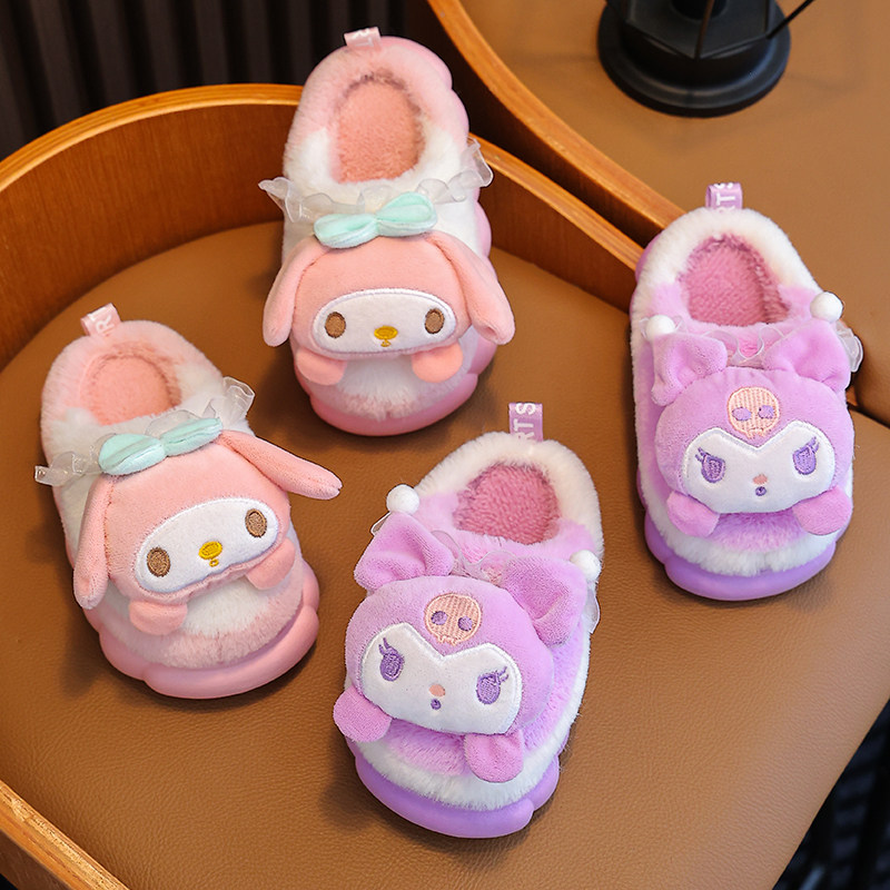 库洛米童棉鞋女孩秋冬季母女亲子保暖加厚防滑可爱卡通包跟棉拖