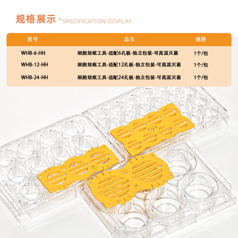 WHB细胞划痕工具神器插件独立包装适配6孔板12孔板24孔板划痕实验专用操作便捷适配200ul枪头可高温高压灭菌