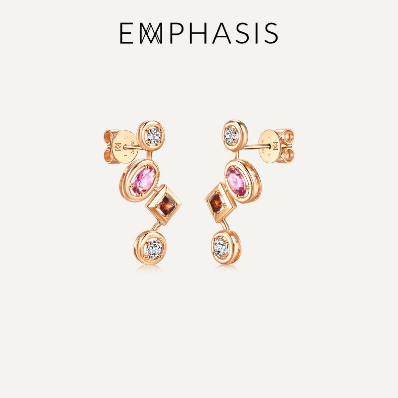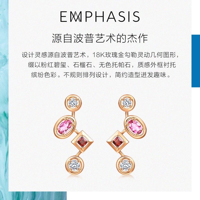 周生生集团旗下品牌EMPHASIS形系列18K金粉红碧玺耳钉95667E