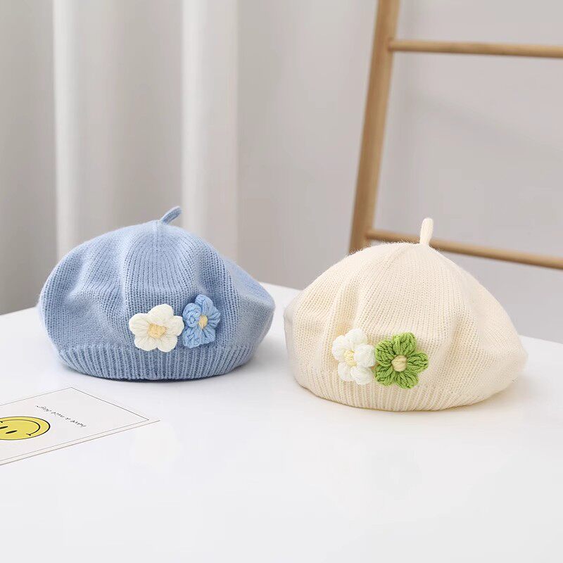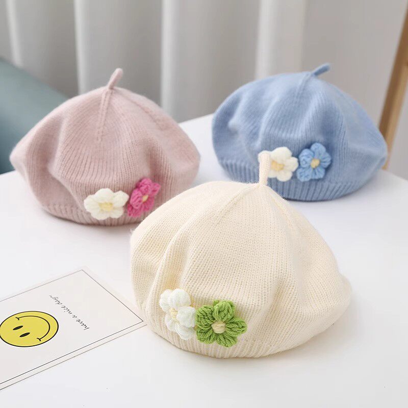 婴儿帽子秋冬季过年婴幼儿蓓蕾帽红色女童针织帽贝雷帽儿童毛线帽
