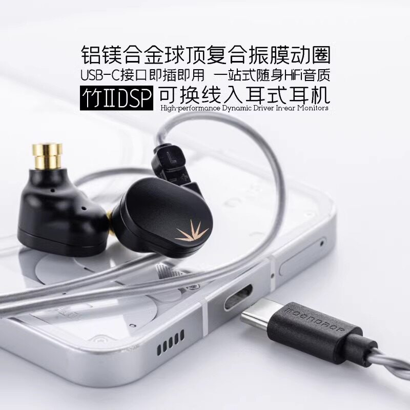 水月雨竹2/DSP版解码铝镁振膜换有线HiFi带麦调音TypeC新款耳机