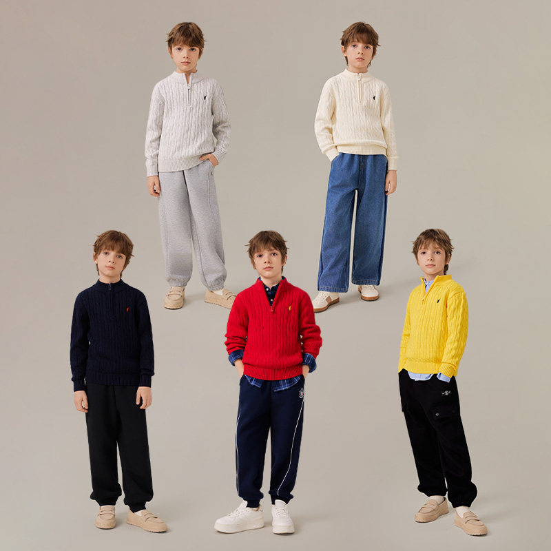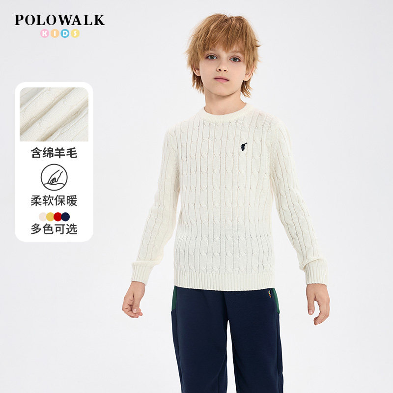 POLOWALK童装男童针织衫2025秋冬新款绞花立领中大童红色圣诞毛衣