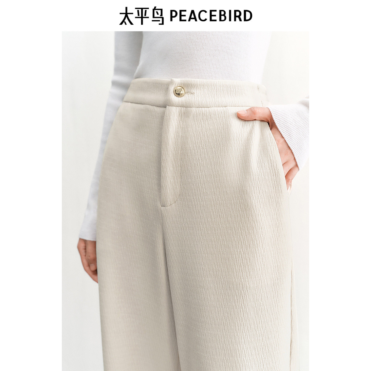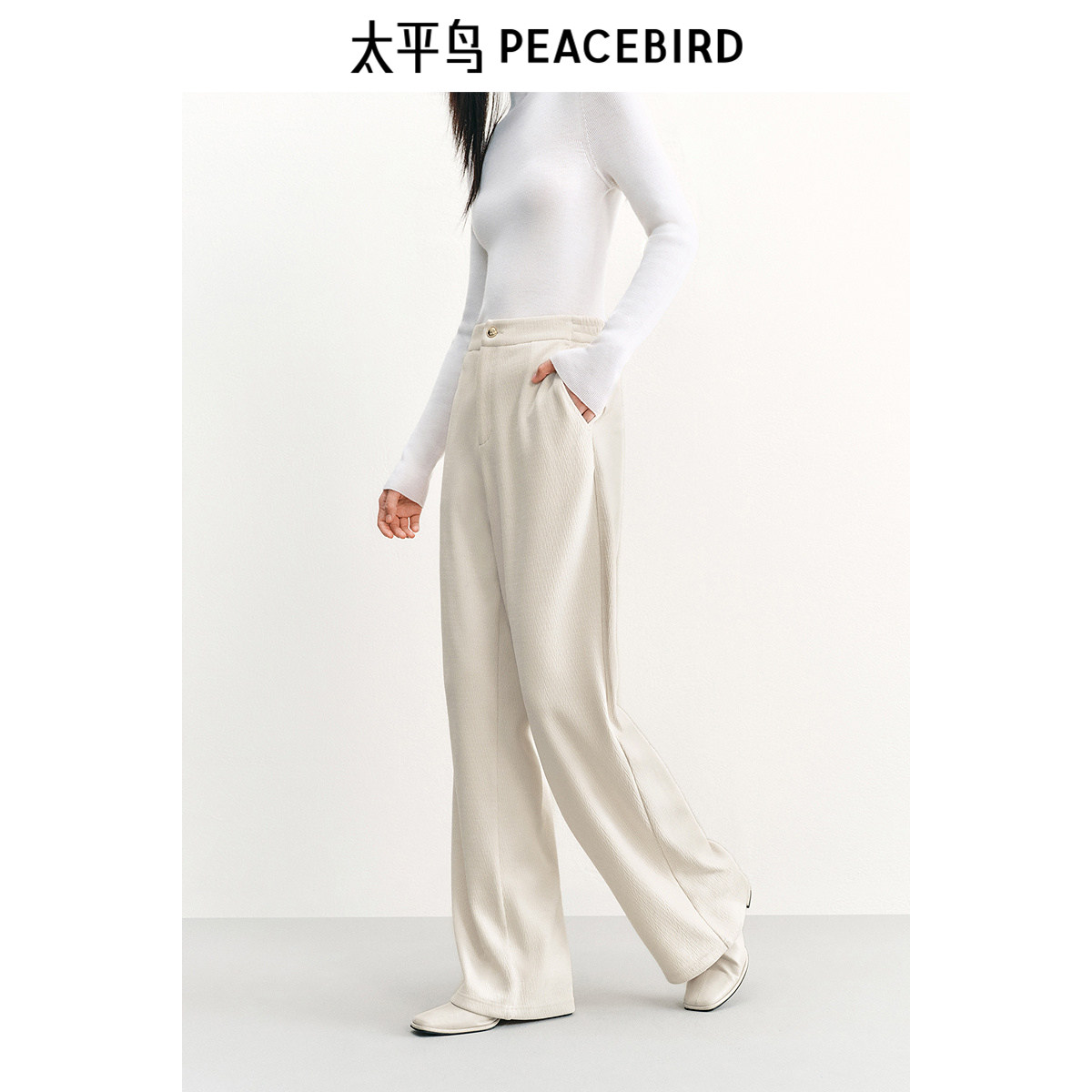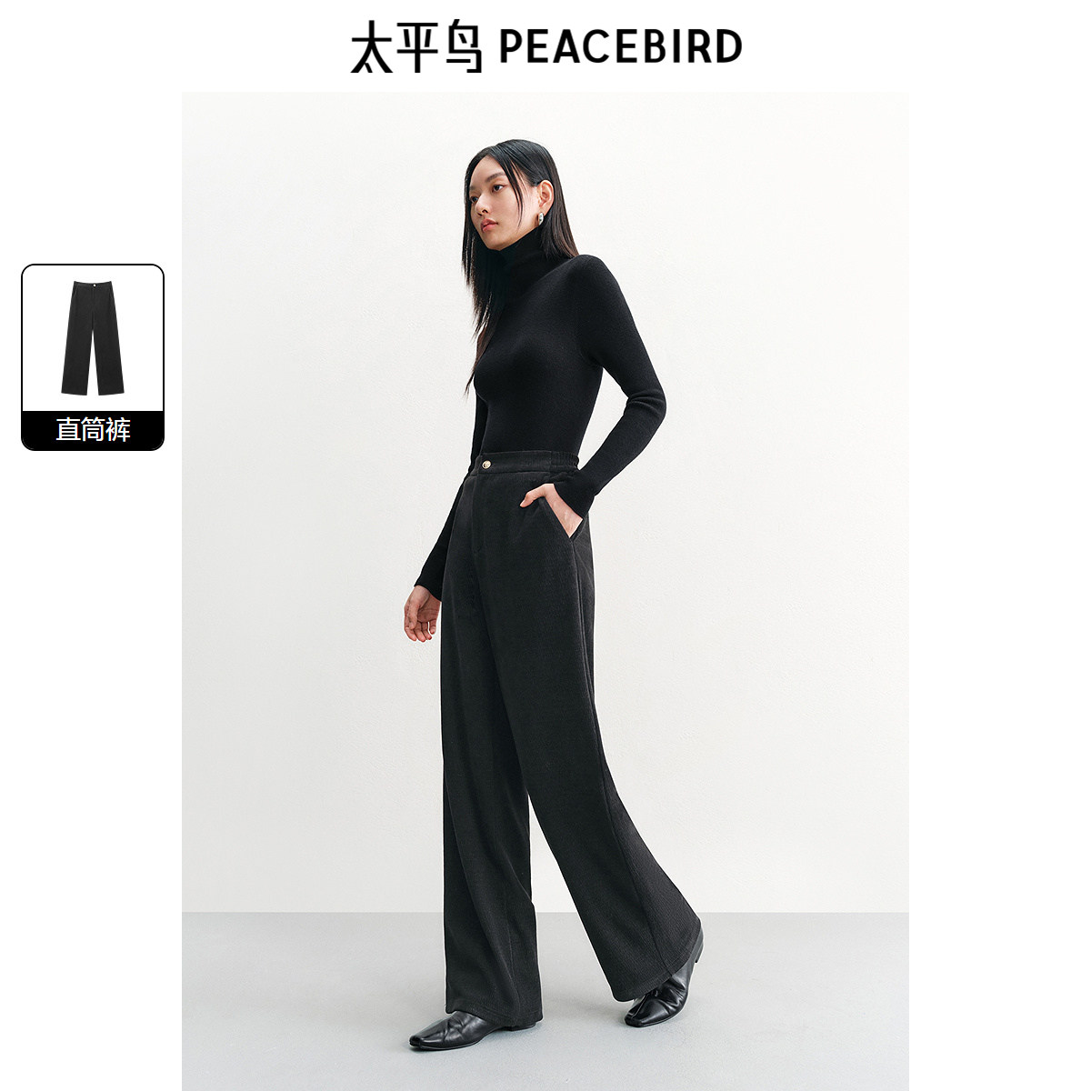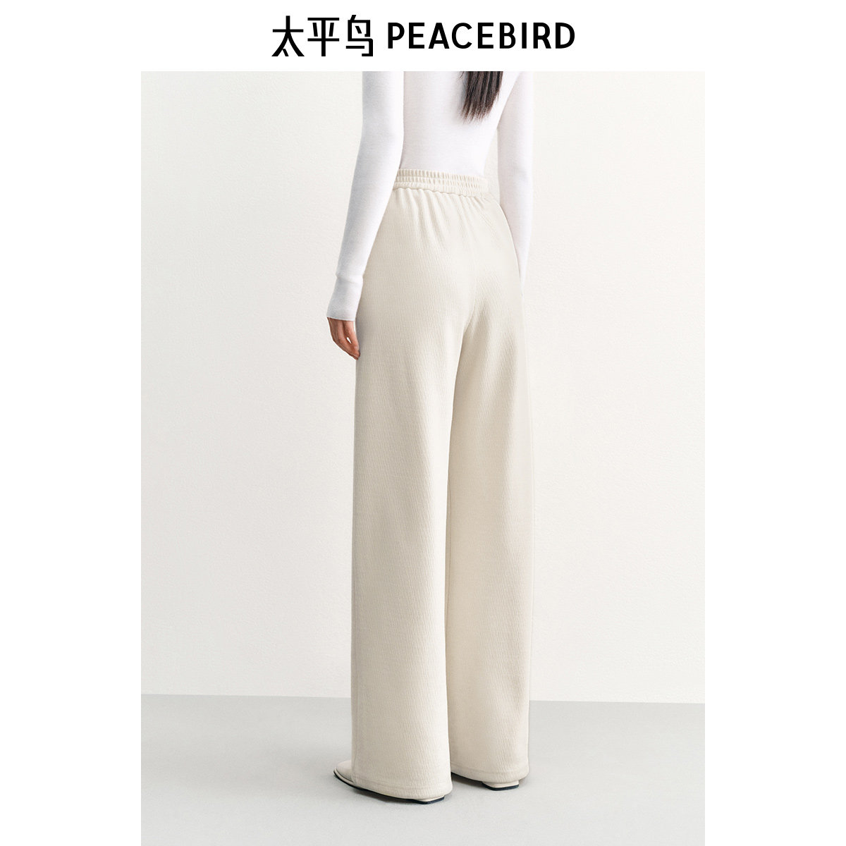 太平鸟高腰直筒雪尼尔直筒裤25年冬季宽松显瘦保暖阔腿休闲裤女*