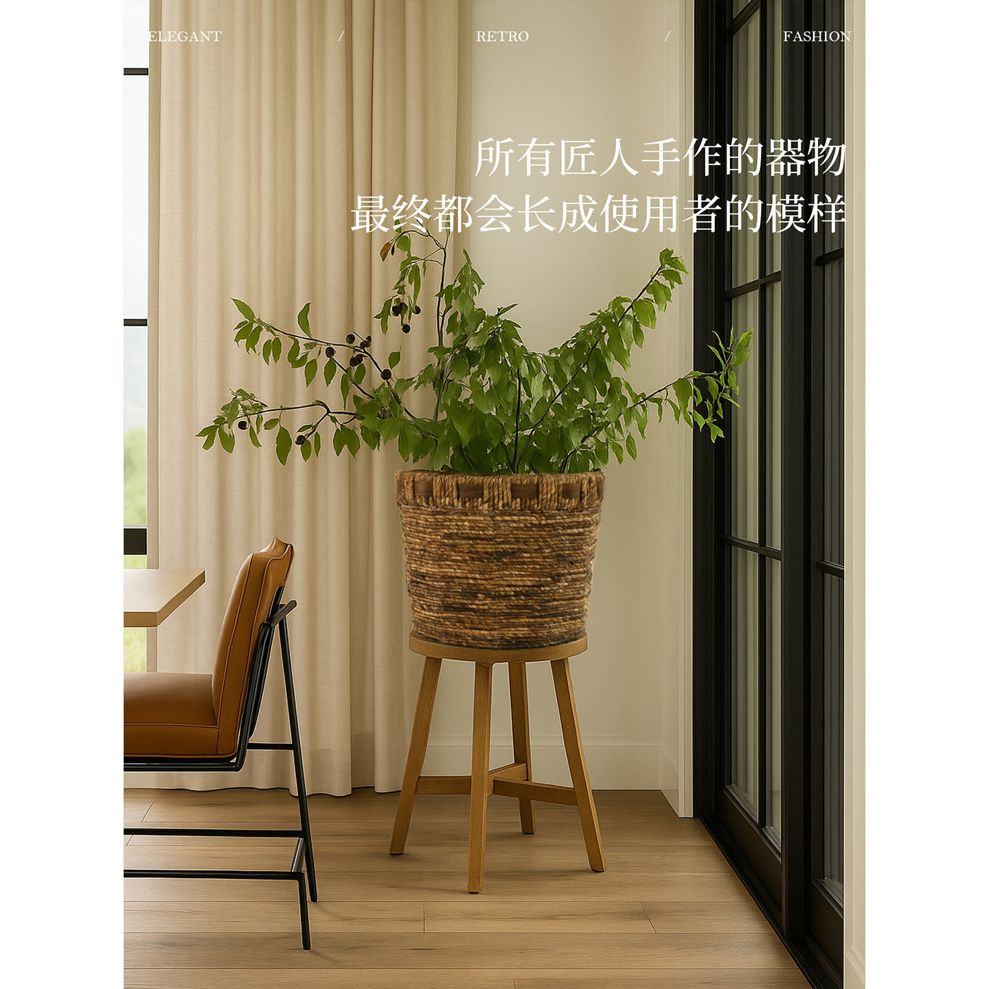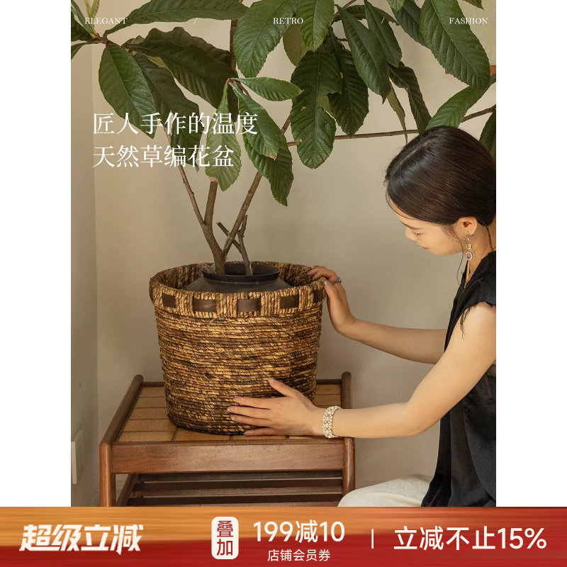 蜡笔派竹间集收纳筐手工草编花盆绿植物装饰摆件复古家用编织篮