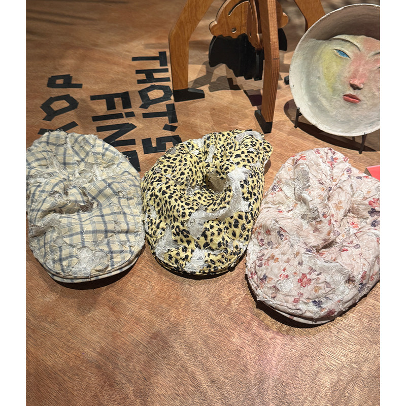 妖精的口袋蕾丝拼接豹纹贝雷帽子2025年新款碎花格纹拼接复古帽子