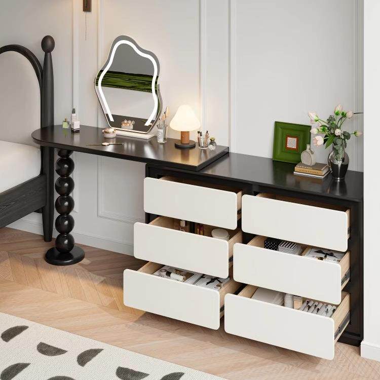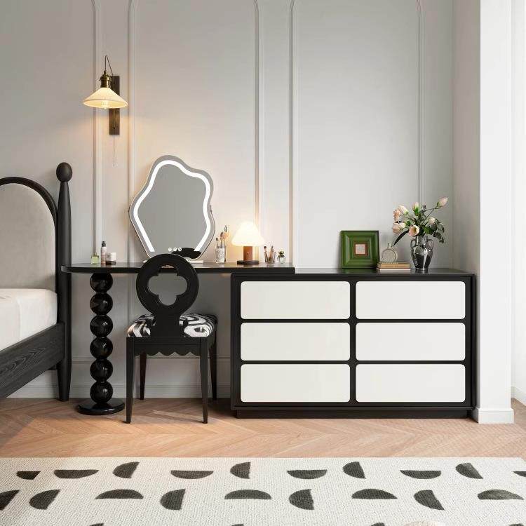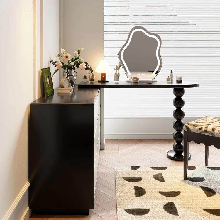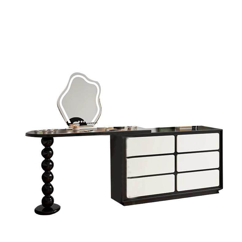 法式复古梳妆台高级黑色床尾斗柜转角书桌斗柜一体伸缩实木化妆桌