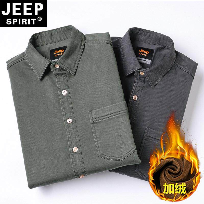 JEEP吉普男士加绒衬衫冬季加厚款抗皱保暖休闲外套中年宽松大码衣