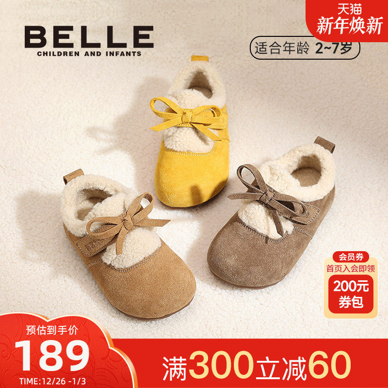 百丽童鞋勃肯鞋2025秋冬女童加绒保暖厚底毛绒棉鞋女孩软底休闲鞋