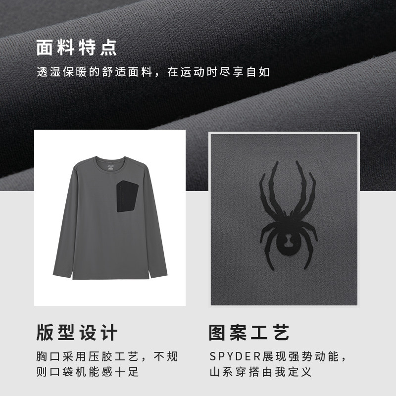 SPYDER蜘蛛秋冬男MOUNTAIN LIFE休闲舒适柔软圆领长袖T恤24CF421M