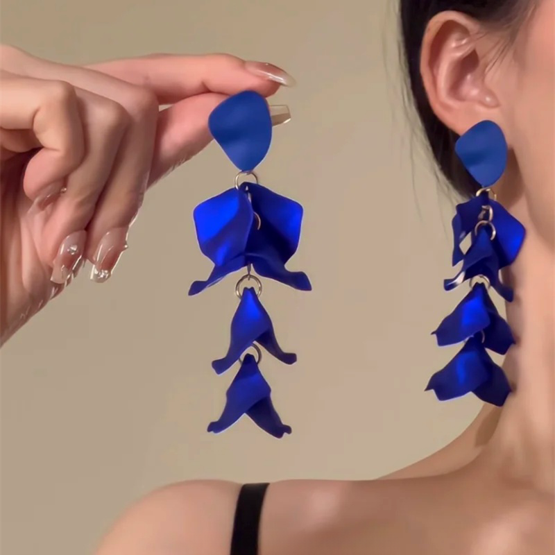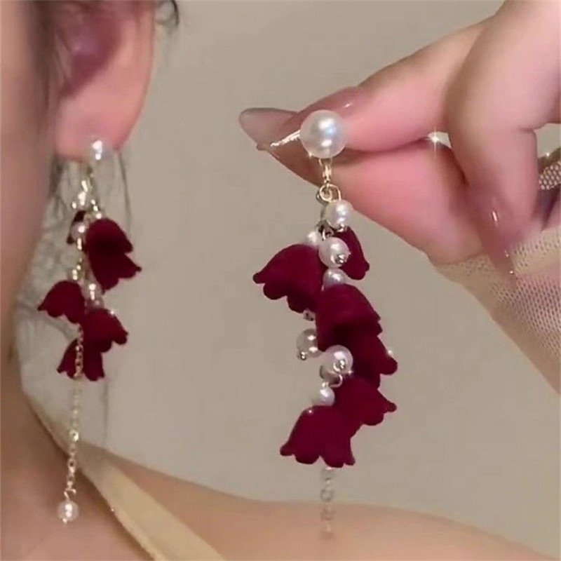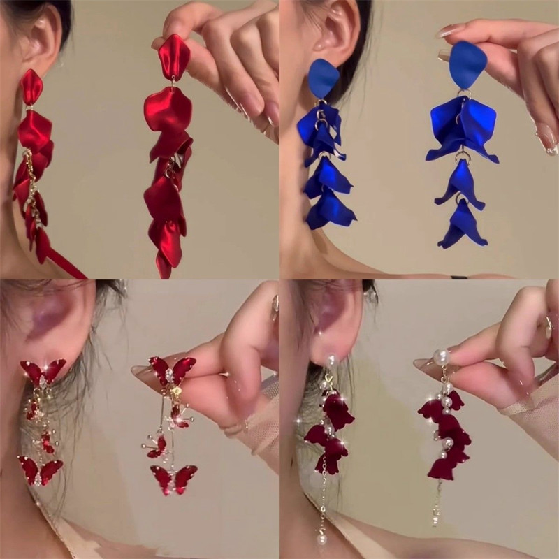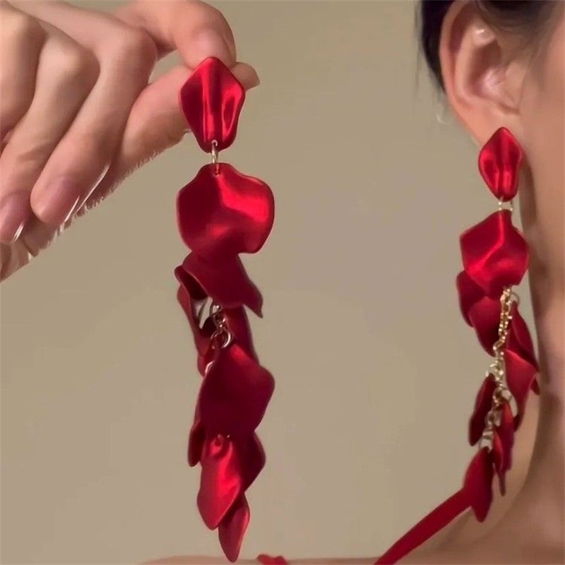 复古夸张长款红色花瓣耳环韩式气质高级感花朵耳坠氛围感新娘耳饰