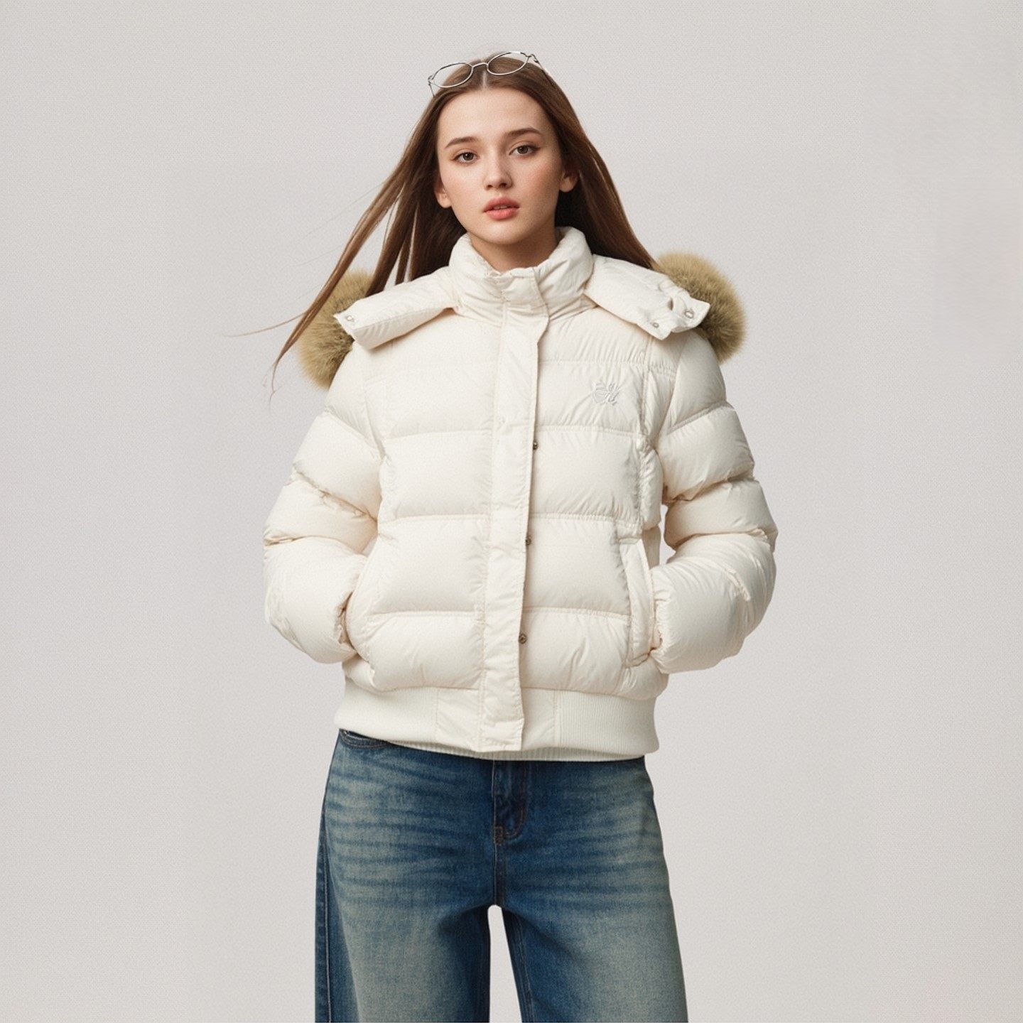 鸭鸭2025秋冬新款立领短款羽绒服小个子女冬多巴胺连帽可拆帽外套