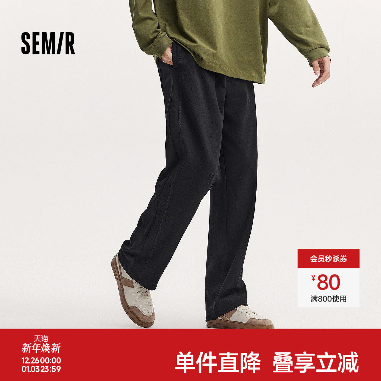 森马宽松卫裤2025秋款百搭基础裤子男垂感休闲直筒裤男女同款