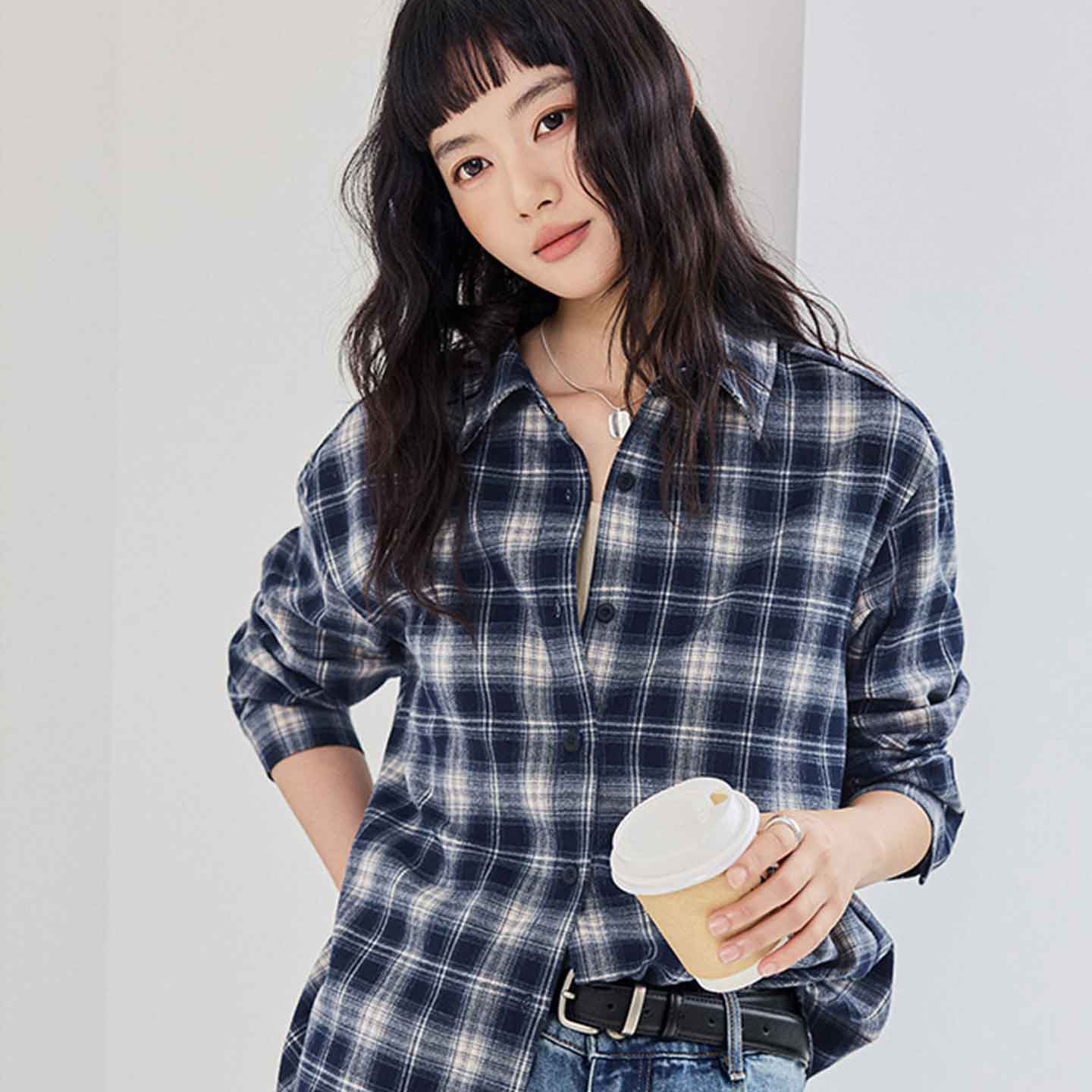 LB真维斯格子衬衫女春秋款2025新款格纹开衫宽松上衣女士秋季外套