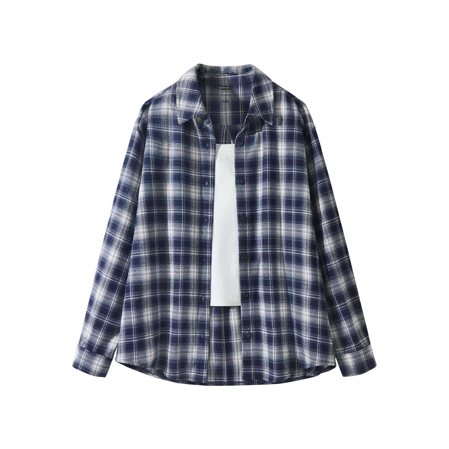 森柔|森马牛仔衬衫女春中长款oversize落肩长袖衣服格纹街头衬衣