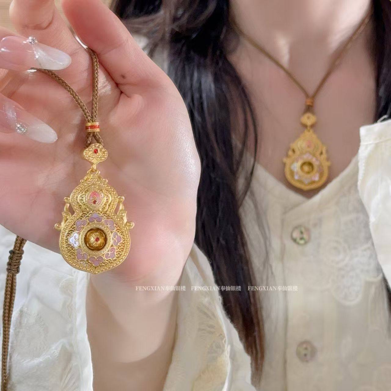 「璃葫」2025新品民族风花丝葫芦吊坠女鎏金毛衣链挂坠国潮风项链