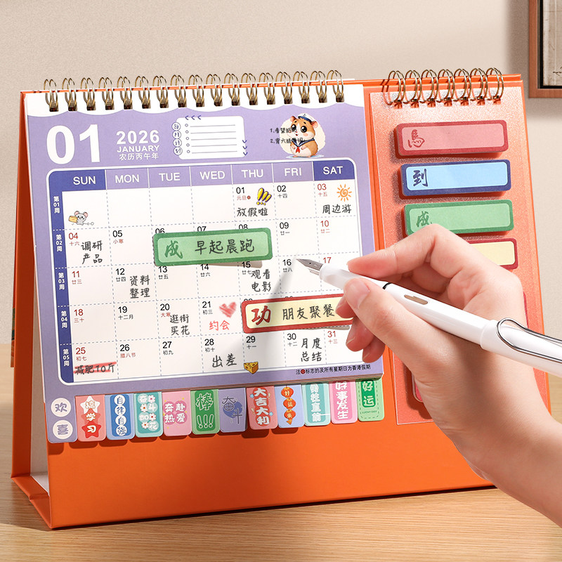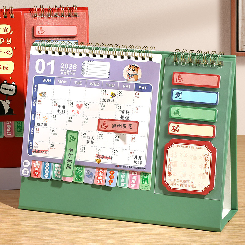 2026年新款台历创意卡通日历全年马年迷你小台历桌面摆件办公室学生每日计划表工作自律打卡记事mini计划月历
