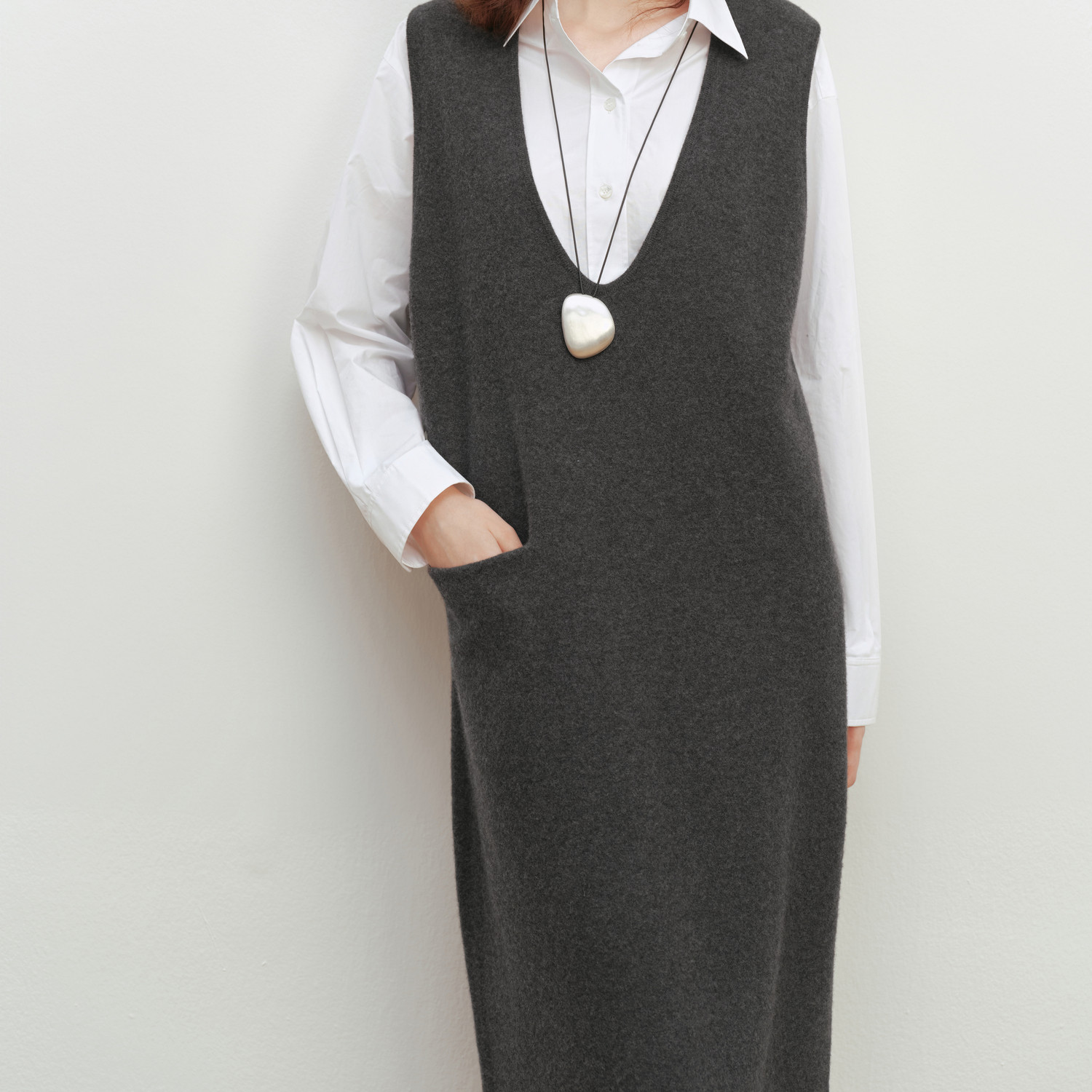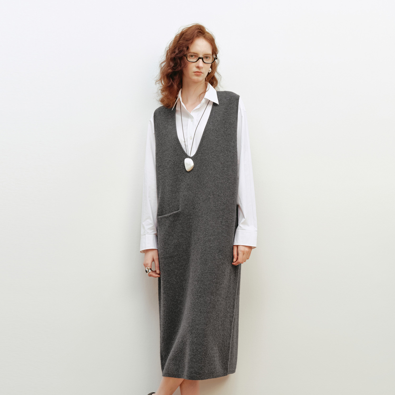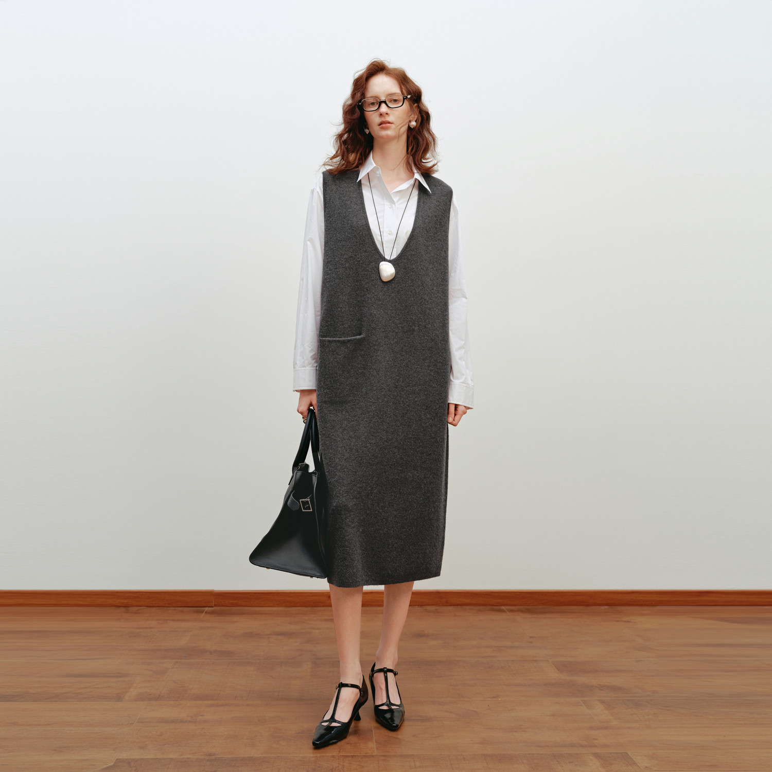 MISSCOCOON可可尼C3系列100%绵羊毛深V领直筒背带裙通勤冬连衣裙