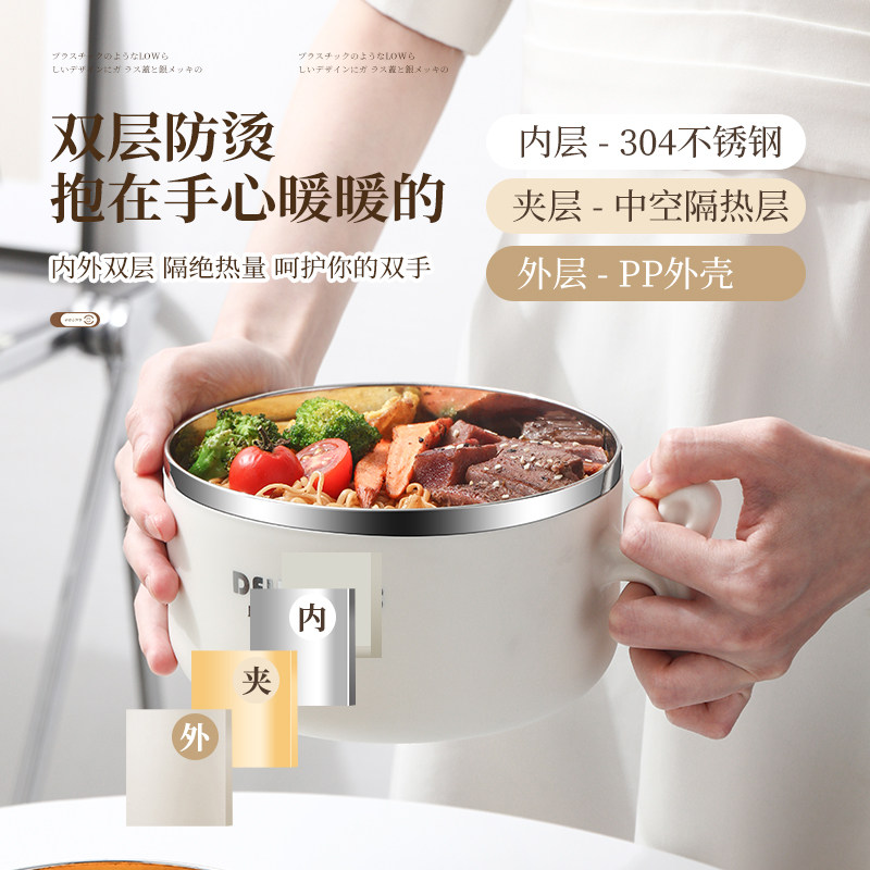 304不锈钢泡面碗带盖带手柄卡通学生宿舍办公室泡面神器
