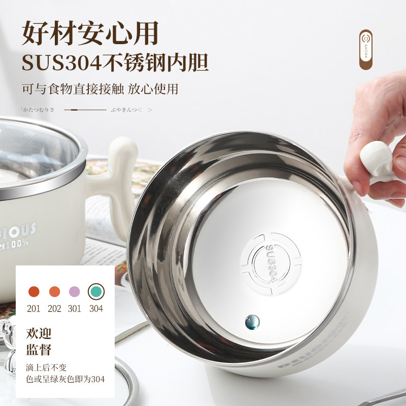 304不锈钢泡面碗日式双耳带盖汤碗大容量学生宿舍麻辣烫专用餐具