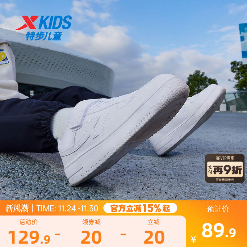 特步童鞋儿童小白鞋男童板鞋秋冬男孩学生白色运动鞋女童鞋子棉鞋