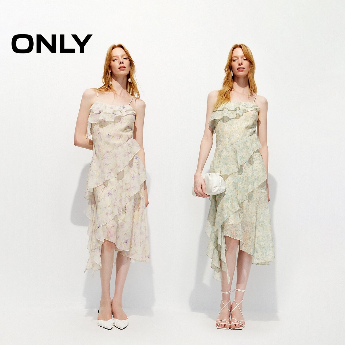 ONLY2026春季新款飘逸荷叶边裙子可调节细肩带不规则仙女连衣裙女