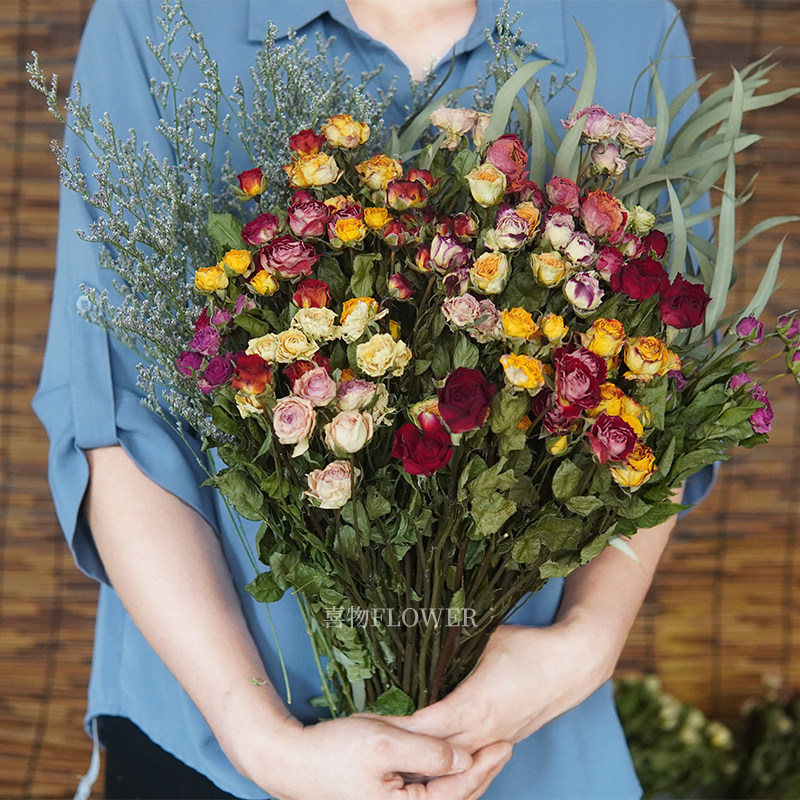 多头玫瑰干花云南干花泡泡真花家居客厅办公装饰花礼物鲜花摆放