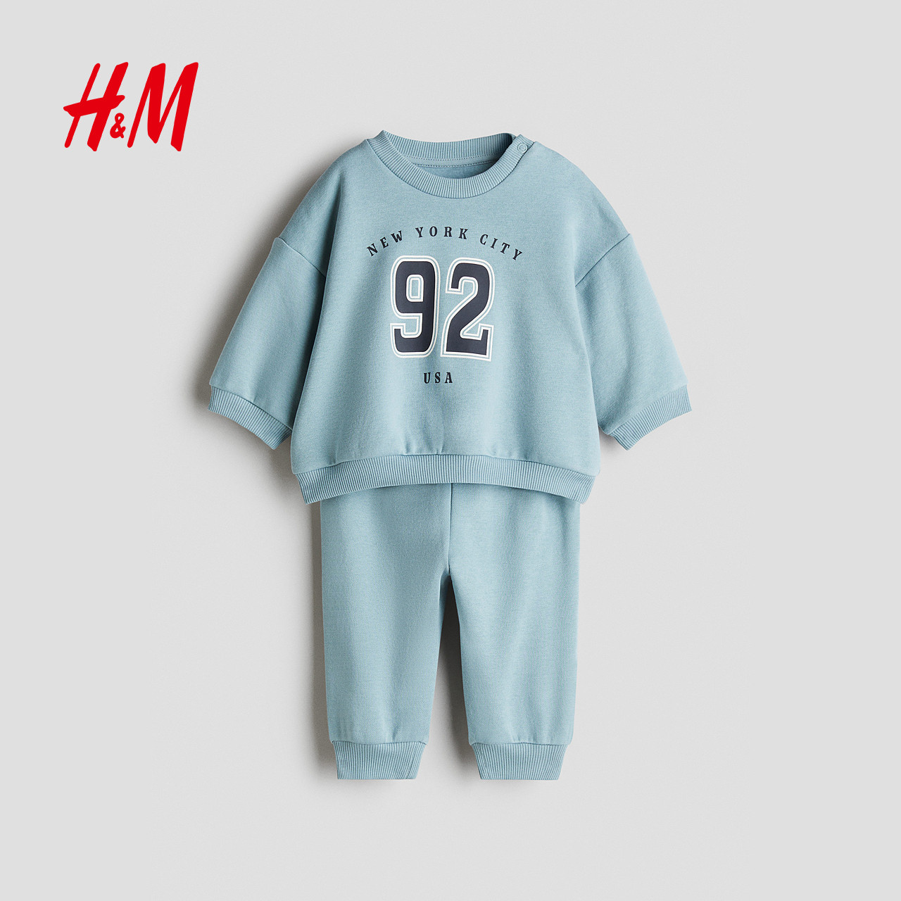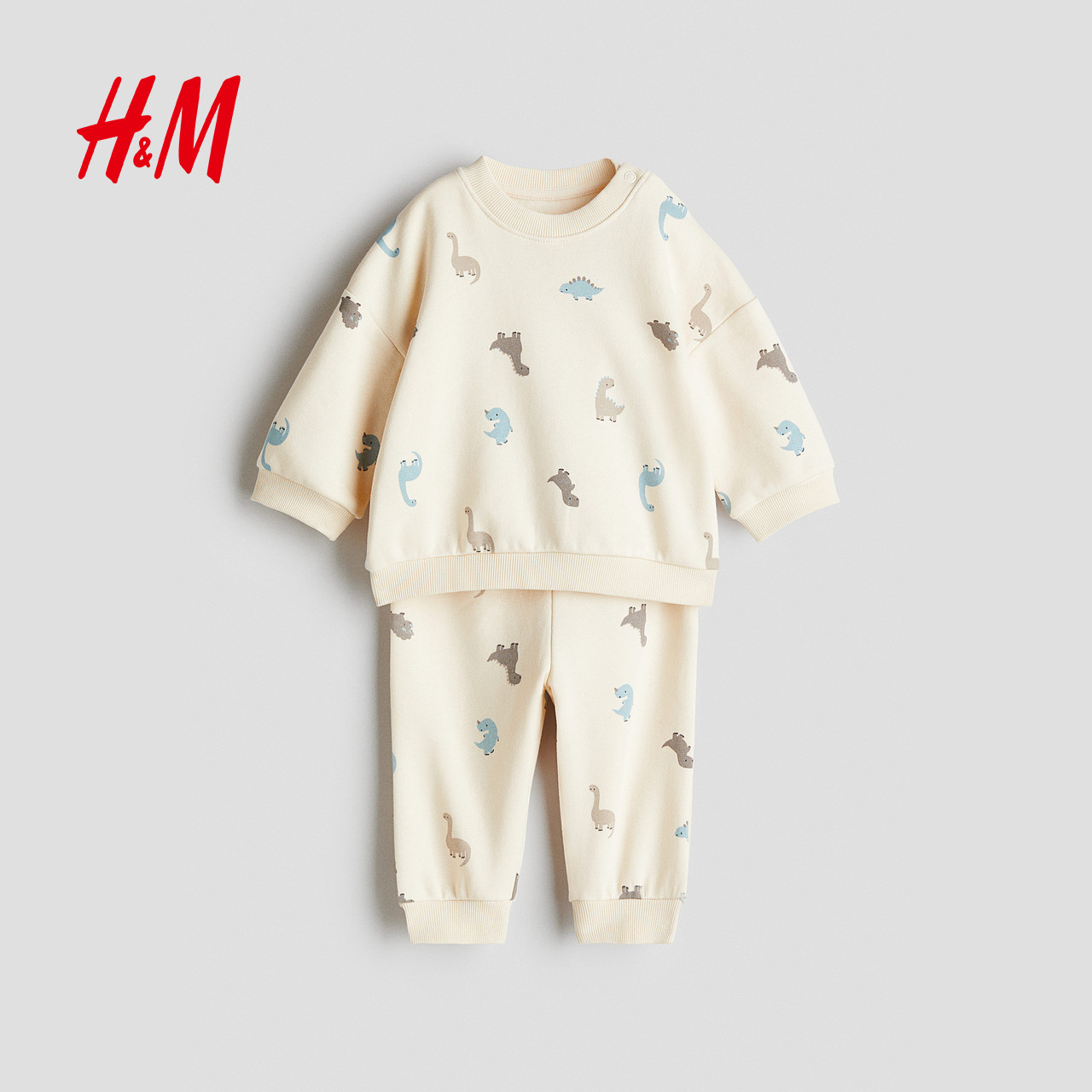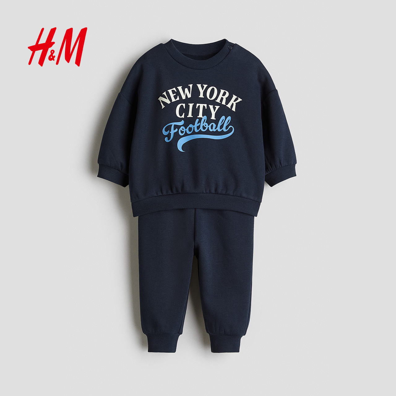 HM童装男婴套装2件式2025年冬季新款拉绒内里印花卫衣上衣1292690
