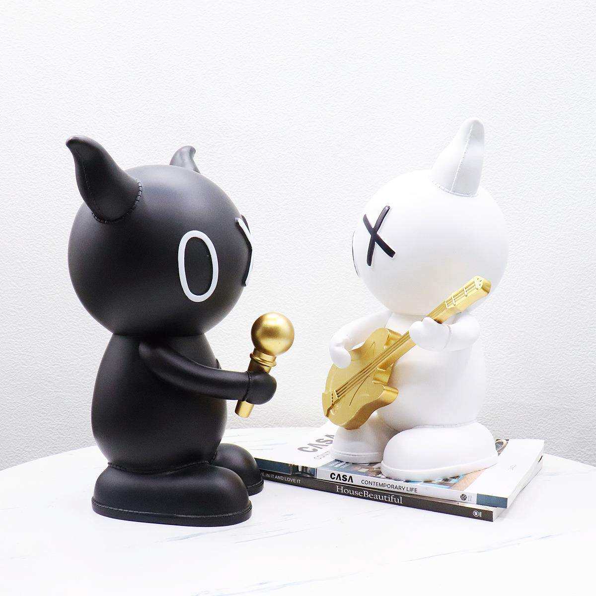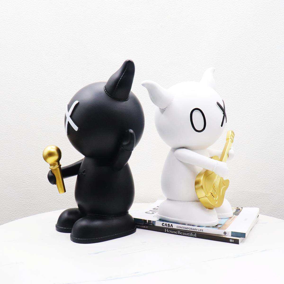 创意现代黑白牛音乐组合树脂摆件酒吧酒店民宿样板间软装饰工艺品
