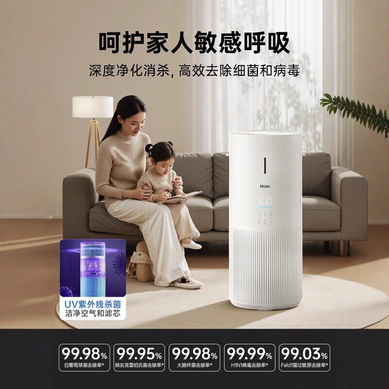 海尔空气净化器家用除甲醛吸烟除烟宠物异味灰尘负离子小型净化机