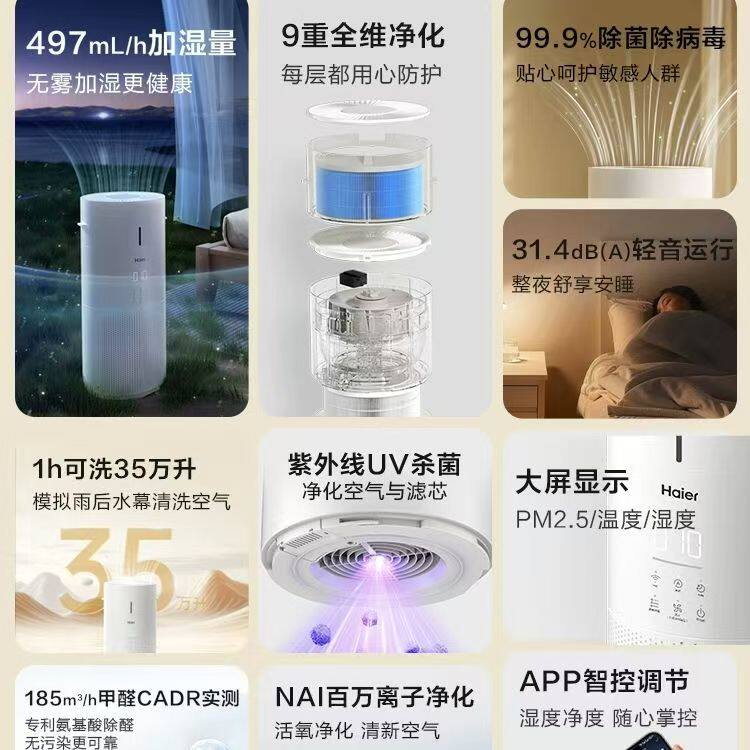 海尔麦浪空气净化加湿器一体机家用除甲醛菌灰尘去异味轻音小白鲸