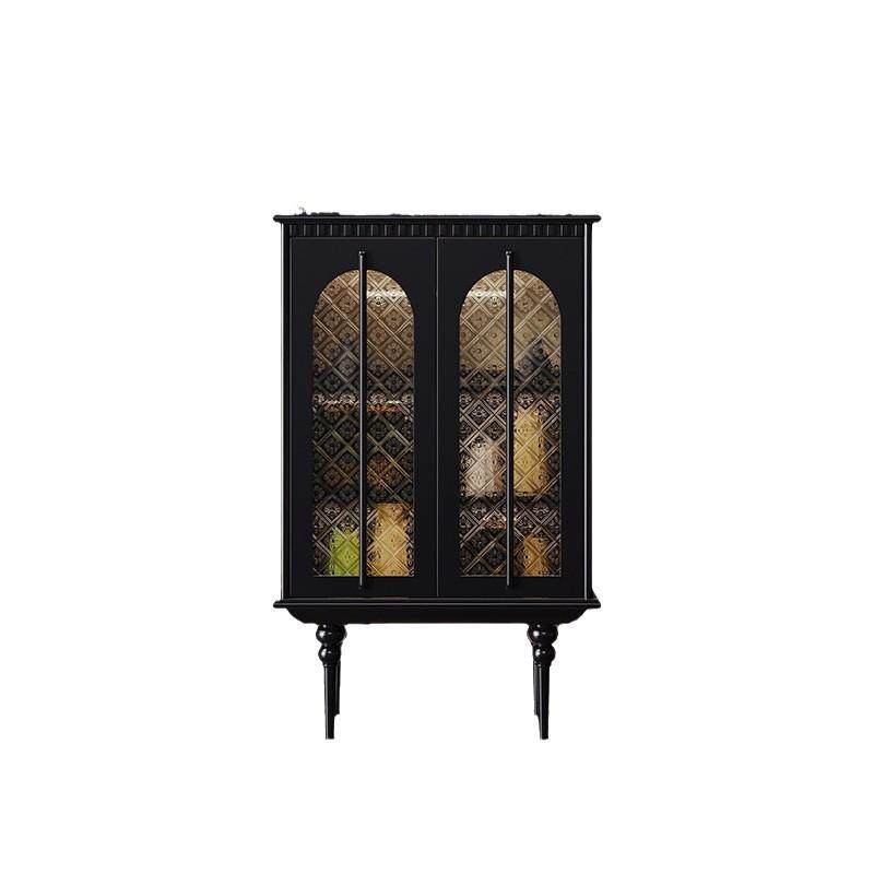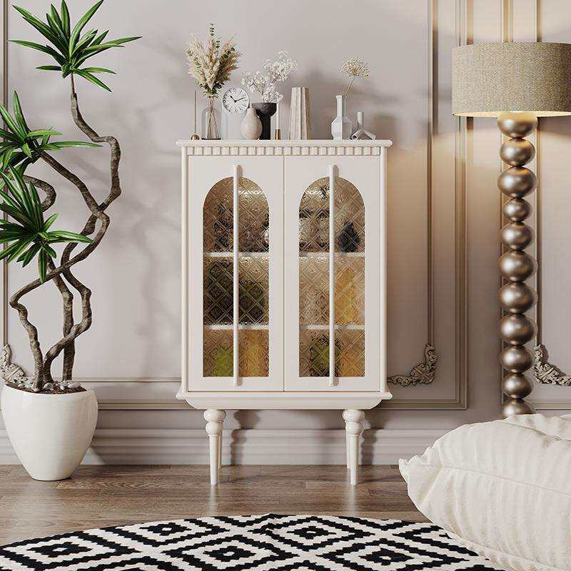 法式复古风餐边柜轻奢实木家用客厅感应灯玻璃门酒柜入户玄关柜