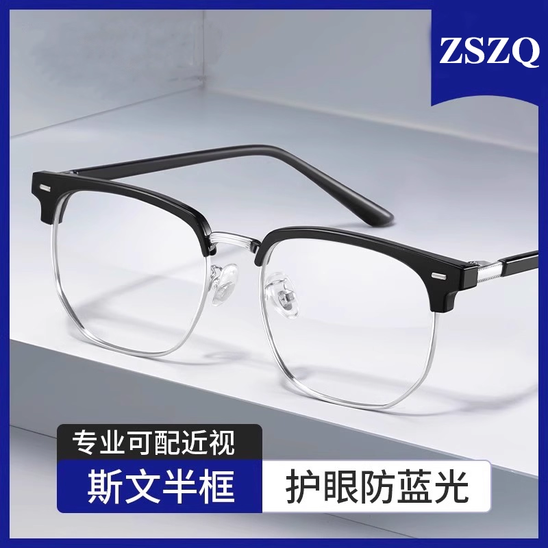 可配度数高级感斯文眼镜架半框眼镜男近视防蓝光平光镜防辐射镜框