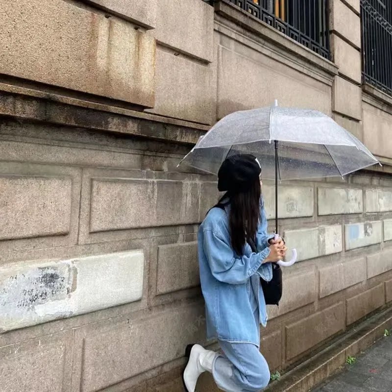 高颜值透明伞男自动长柄雨伞女生家用加大加厚加固大号可爱高级感