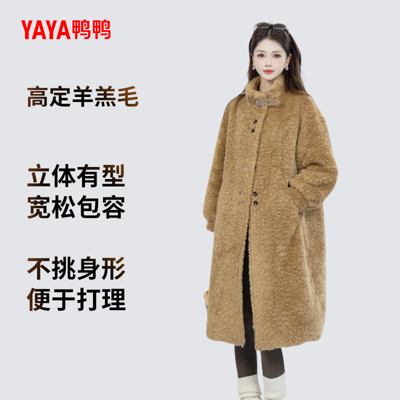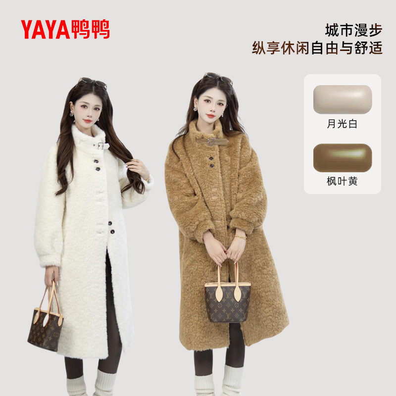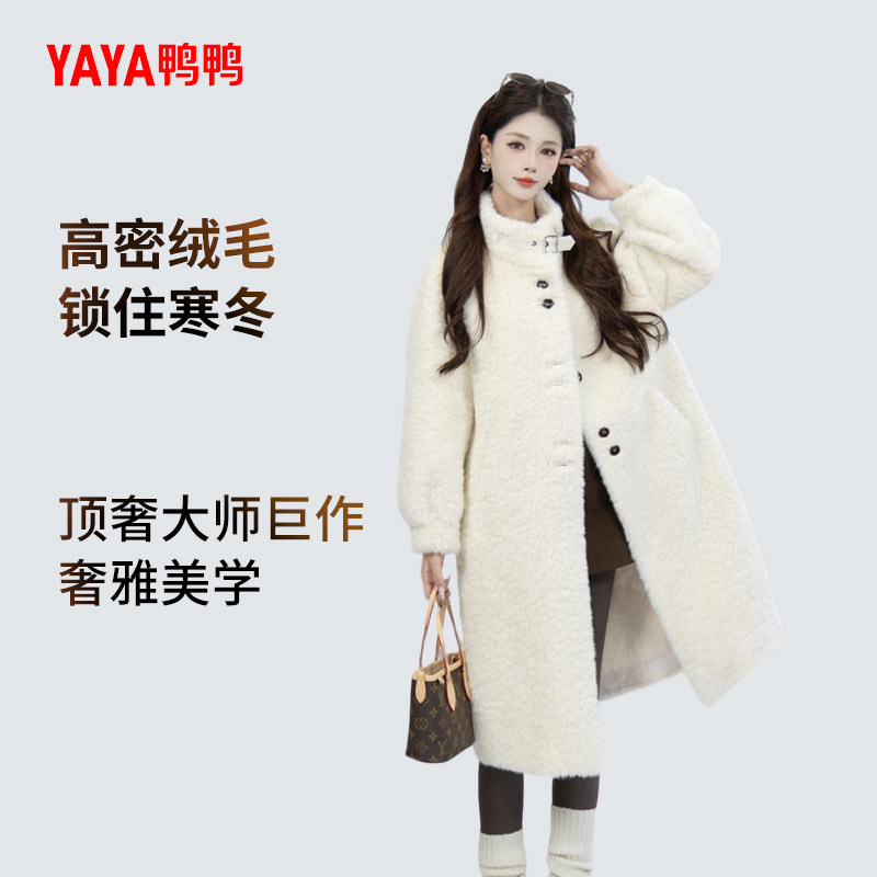 YAYA鸭鸭2025冬季新款羽绒服女气质休闲中长款羊剪绒立领简约外套