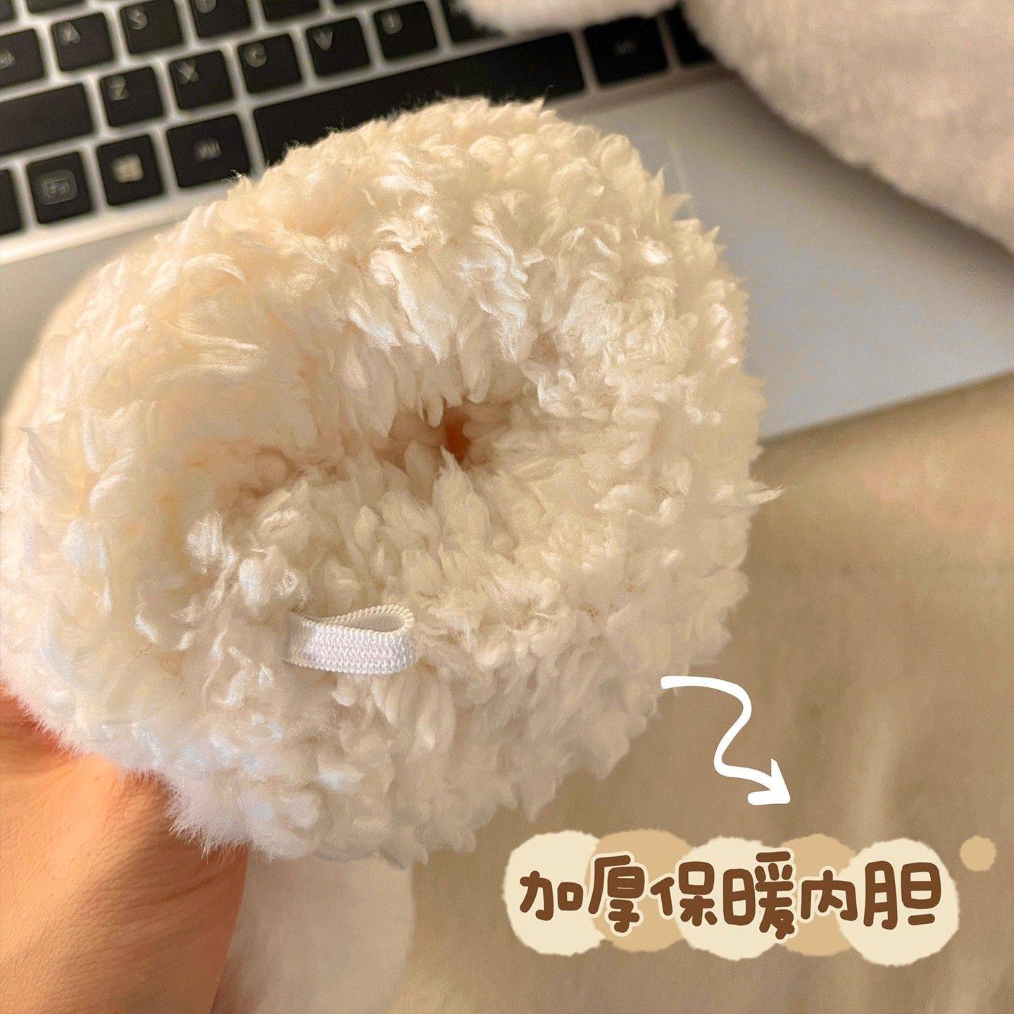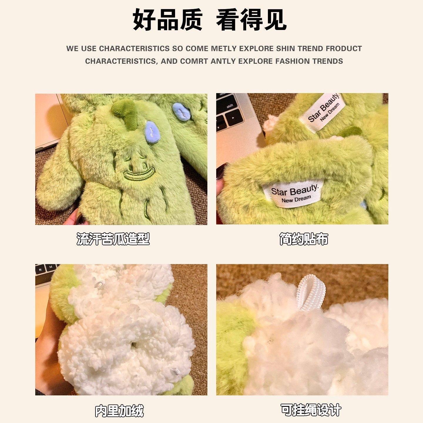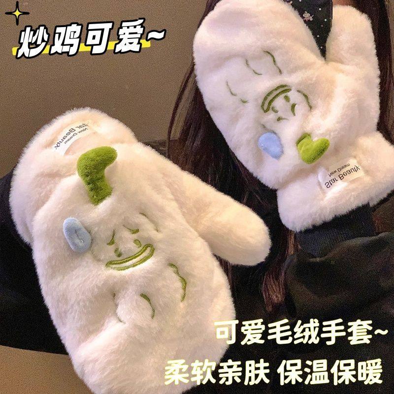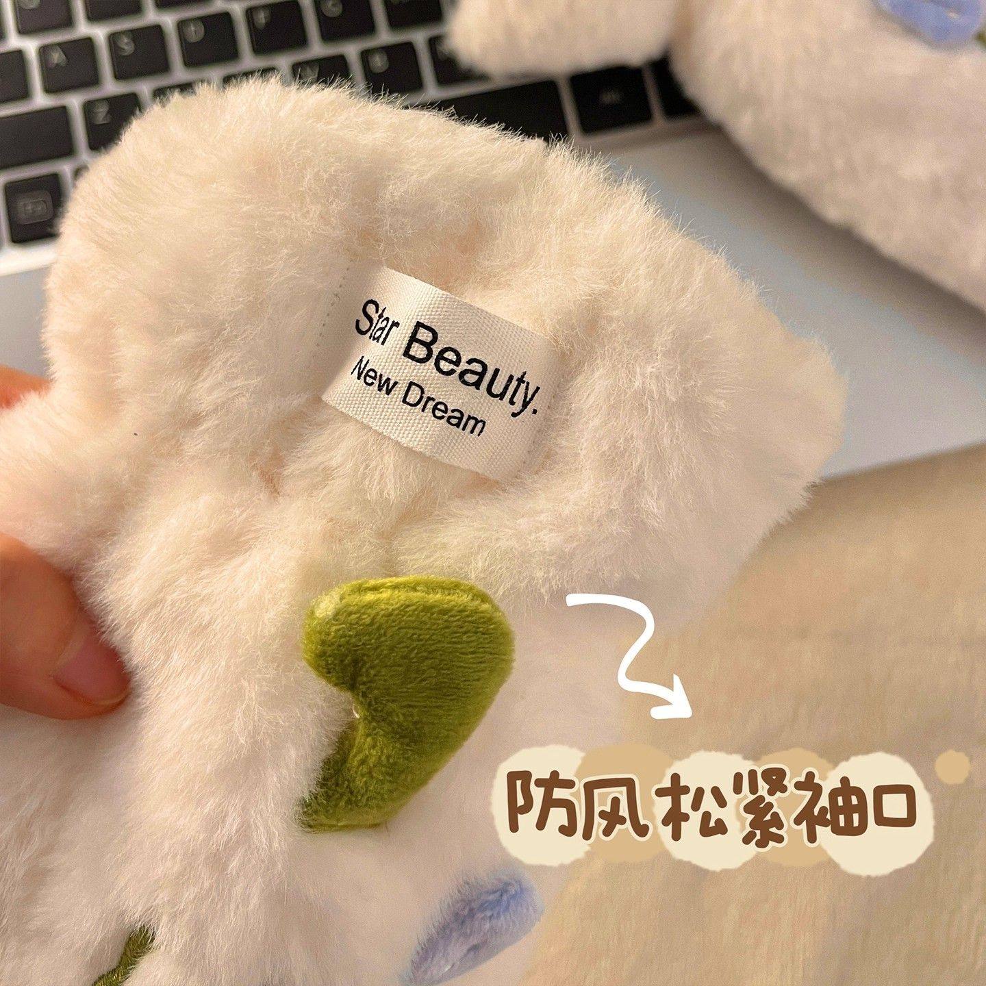 mikko联名可爱卡通猫咪毛绒手套女冬季翻盖半指触屏加厚骑行保暖