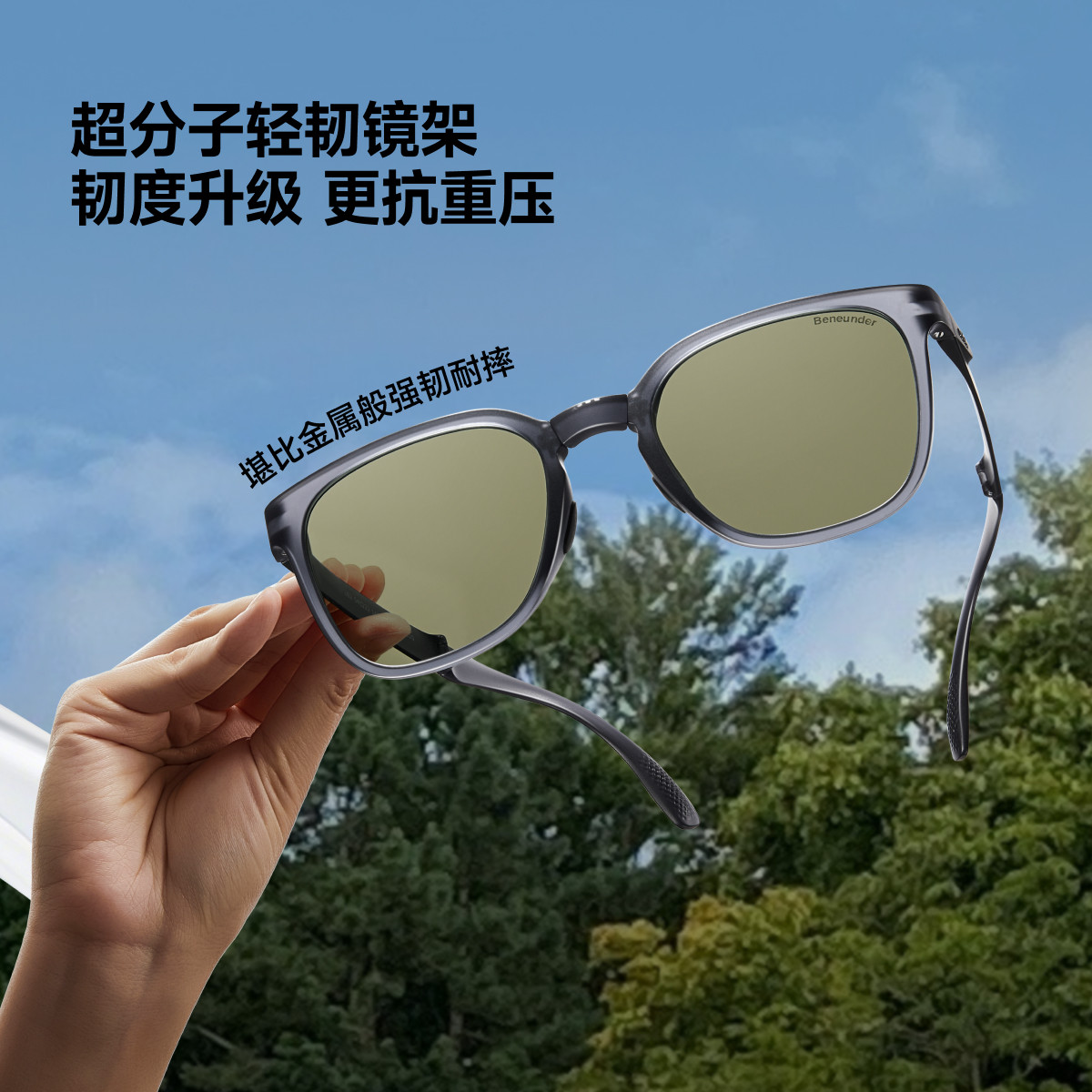 蕉下方圆框折叠墨镜超轻男女款开车户外偏光防紫外线防晒太阳眼镜